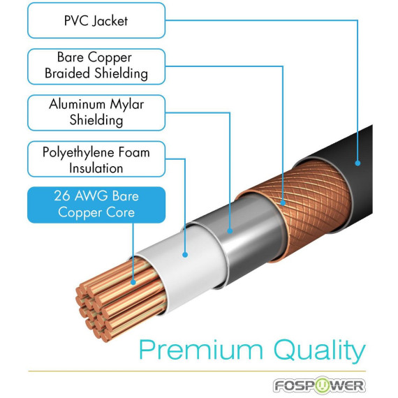 The core of the FosPower stereo audio cables are covered with polyethylene foam (PF) dielectric insulator which greatly minimizes signal loss.