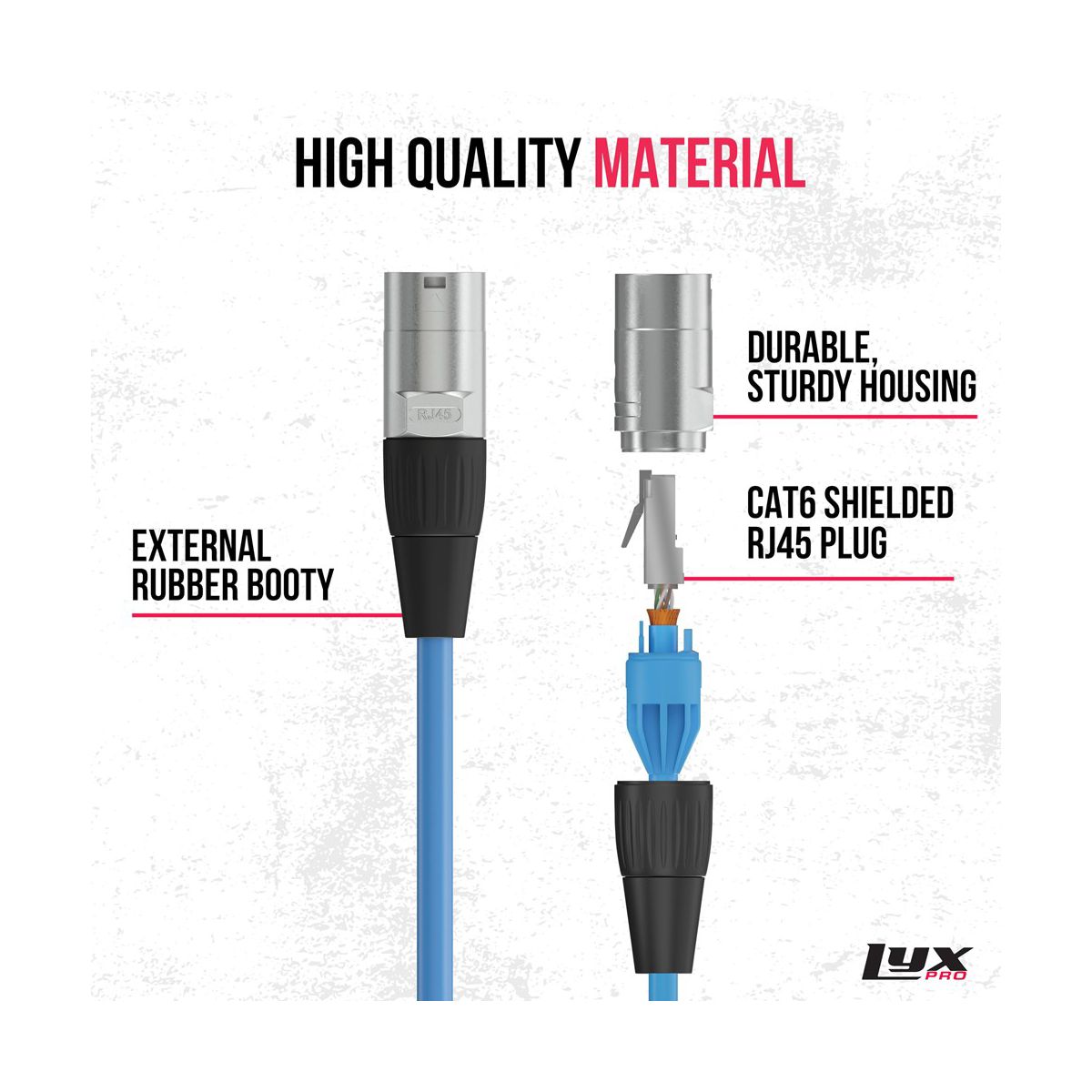 LyxPro Shielded Cat6 RJ45 Ethercon Cable – Male to Male, 50ft, Heavy-Duty Network Cord, Blue