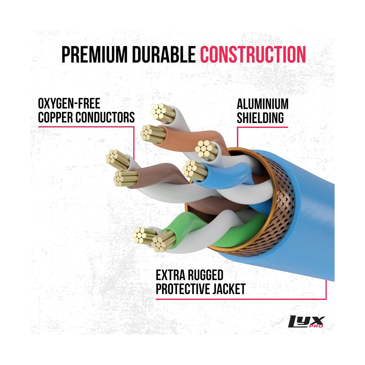 LyxPro Shielded Cat6 RJ45 Ethercon Cable – Male to Male, 50ft, Heavy-Duty Network Cord, Blue