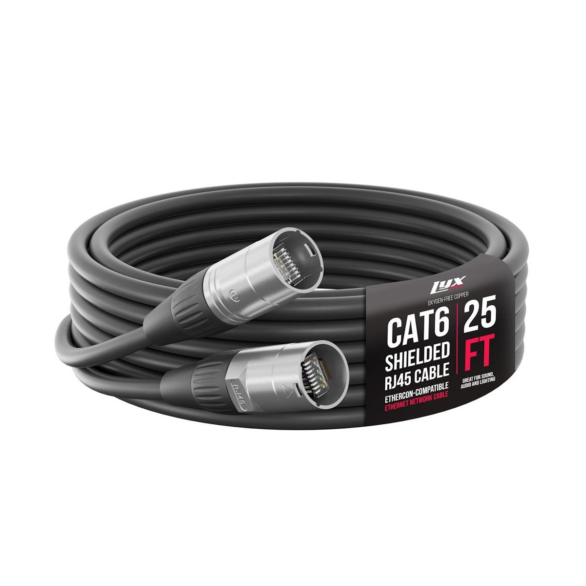 Make every performance count with the LyxPro Shielded CAT6 Ethercon Cable, available in multiple lengths including 25ft, 30ft, 50ft, 100ft, 150ft, and 200ft. Engineered for professional audio, lighting, and Ethernet applications, this cat 6 shielded patch cable delivers high-speed data transfer with minimal interference. The shielded ethercon connectors ensure a secure fit and reliable signal transmission on stage or in the studio.