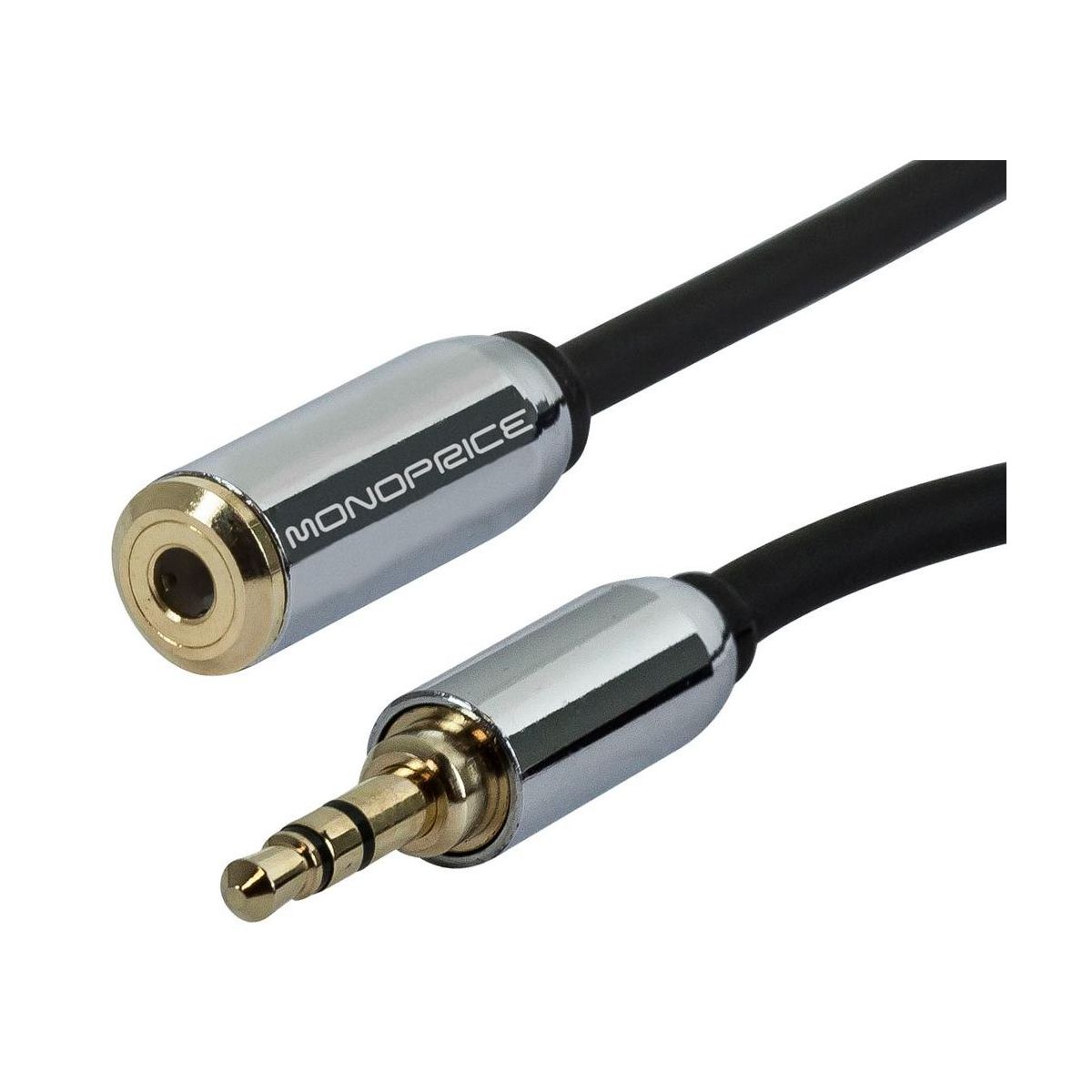 Monoprice Audio Cable - 25 Feet - Black | 3.5mm Male Plug to 3.5mm Female Jack for Mobile, Gold Plated