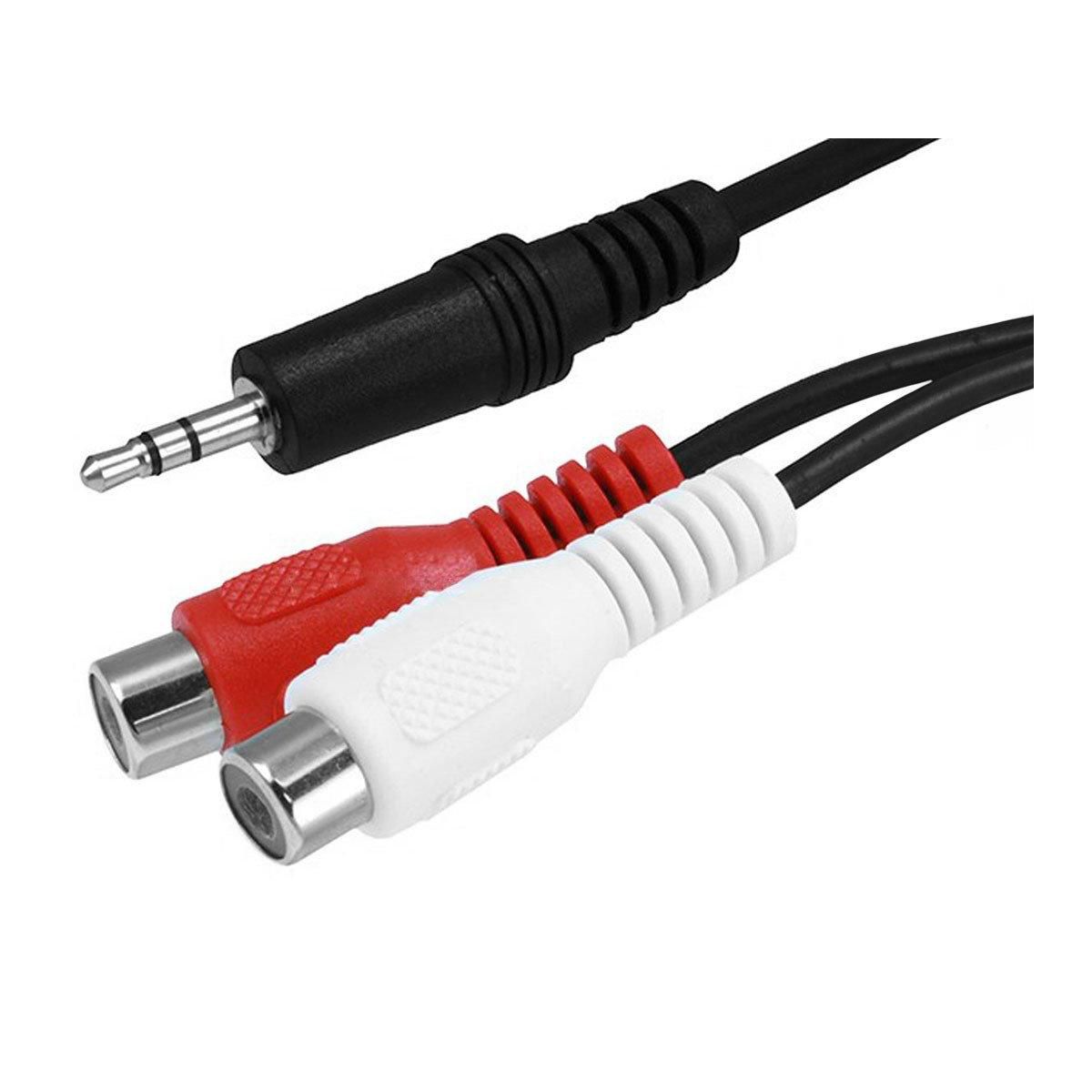 While most mobile devices use the 3.5mm stereo headphone output, most home audio systems with an amplifier or receiver use RCA jacks for audio inputs. This cable is ideal for converting the stereo signal from a 3.5mm headphone jack to separate left and right channel RCA. It has a single 3.5mm (1/8") TRS male stereo plug on one end and a pair of left/right female RCA jacks on the other end, each with molded connector housings and strain relief boots.