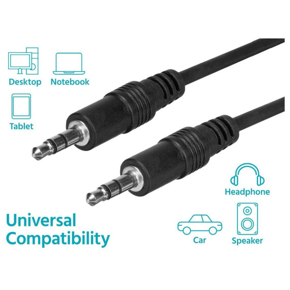 The 3.5mm (1/8") stereo TRS connector is more commonly known as the Headphone Jack on portable mp3 players and mobile phones. This cable features a male 3.5mm stereo (TRS) plug on each end, with molded connector housings and strain relief boots. The cable is ideal for connecting a stereo audio output, such as an mp3 player or phone, to a stereo audio input, such as the auxiliary input on a car stereo system.