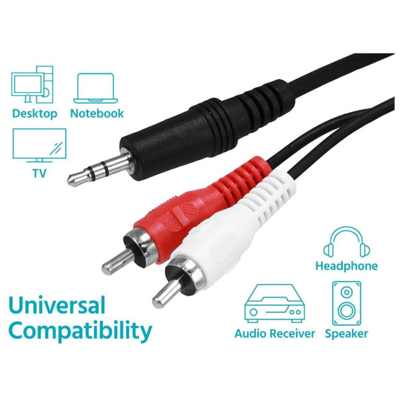 While most mobile devices use the 3.5mm stereo headphone output, most home audio systems with an amplifier or receiver use RCA jacks for audio inputs. This cable is ideal for connecting the output of your mp3 player or phone to your home audio system. It has a single 3.5mm (1/8") TRS stereo male plug on one end and a pair of left/right RCA male plugs on the other end, each with molded connector housings and strain relief boots.