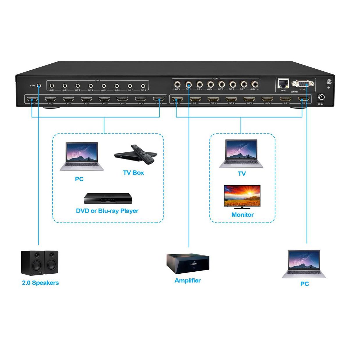 Advanced 8x8 HDMI matrix for seamless audio and video transmission