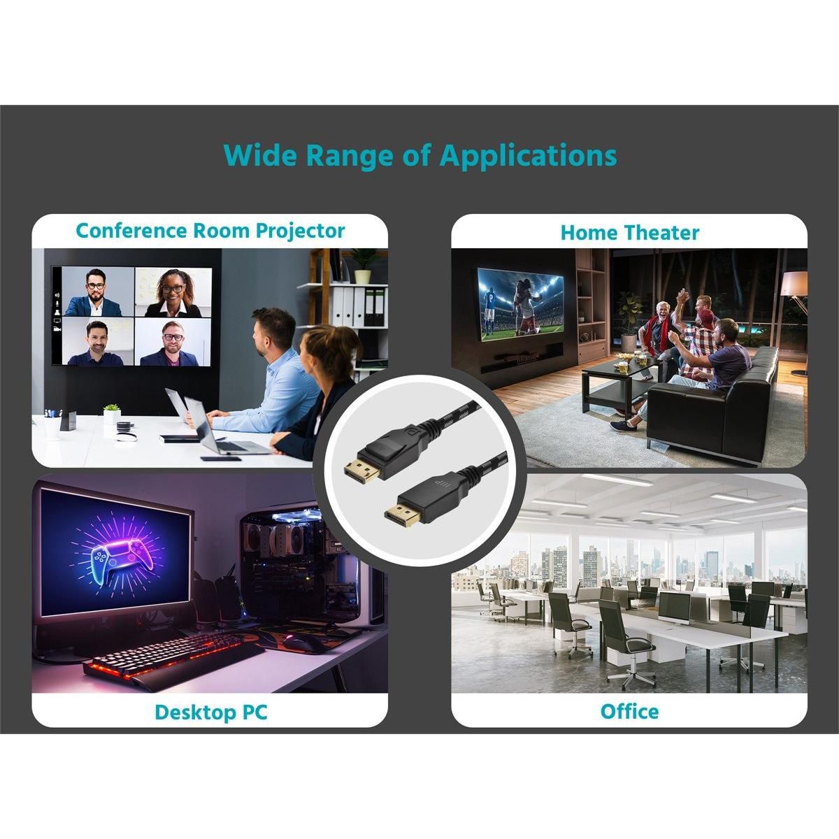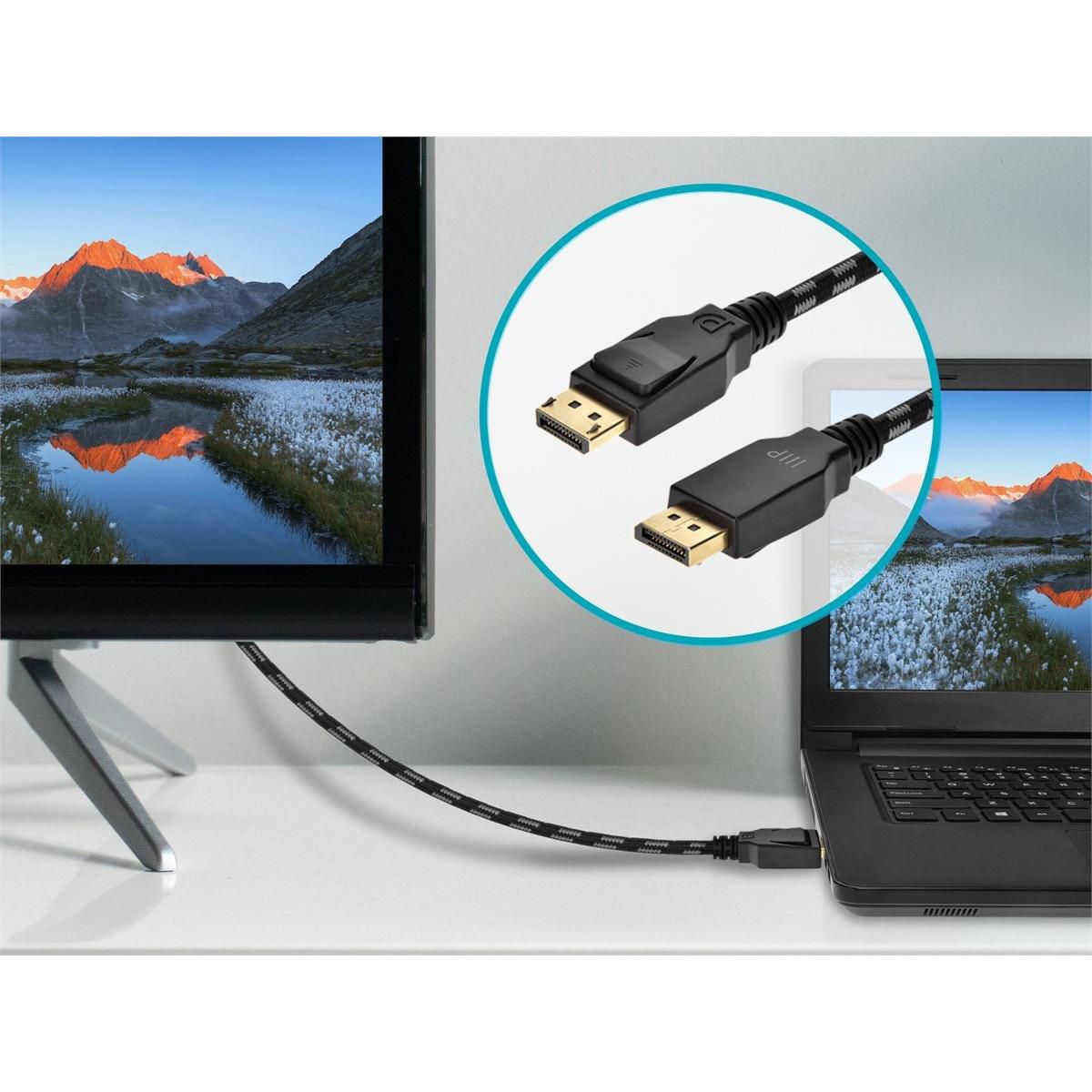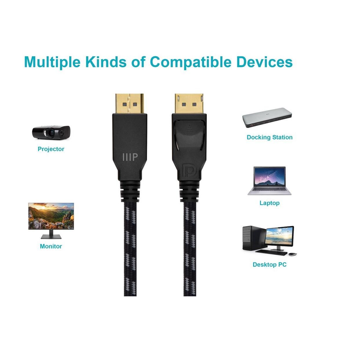 Monoprice Braided DisplayPort 1.4 Cables are compatible with the newest DisplayPort 1.4 specification. With DisplayPort 1.4, you can connect your Displayport equipped ultra-high performance gaming PC or workstation to a high resolution monitor. This cable features support for High Bit Rate 3 (HBR3), Display Stream Compression 1.2 (DSC), Forward Error Correction, and up to 32 Inline Audio Channels. It is fully compatible with older DisplayPort standards and includes the standard DisplayPort connector locks, which helps prevent unwanted disconnects and provides long lasting connectivity.