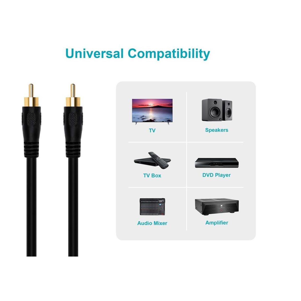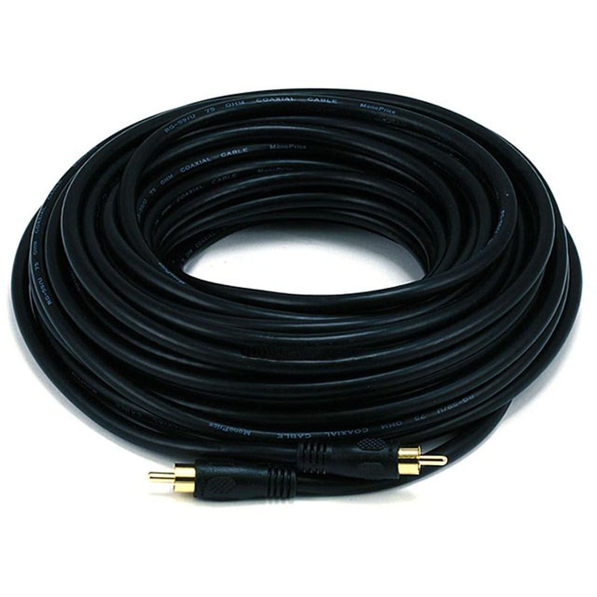 Monoprice Coaxial Audio/Video Cable - 50 Feet - Black | RCA Maleto Male RG59U 75ohm (for S/PDIF Digital Coax Subwoofer & Composite Video)