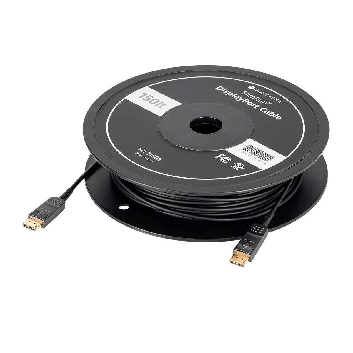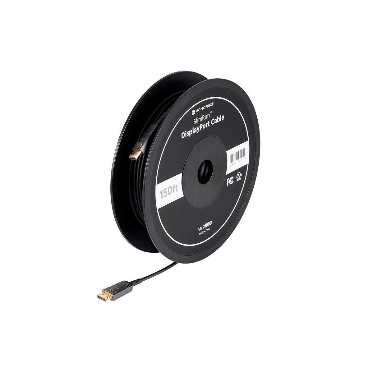 Monoprice SlimRun AV DisplayPort Cable, 32.4Gbps, 8K@30Hz, 5K@60Hz, 4K@120Hz, Fiber Optic, AOC, 20ft supports high-resolution video output for monitors and displays. Ideal for professional and home office environments.