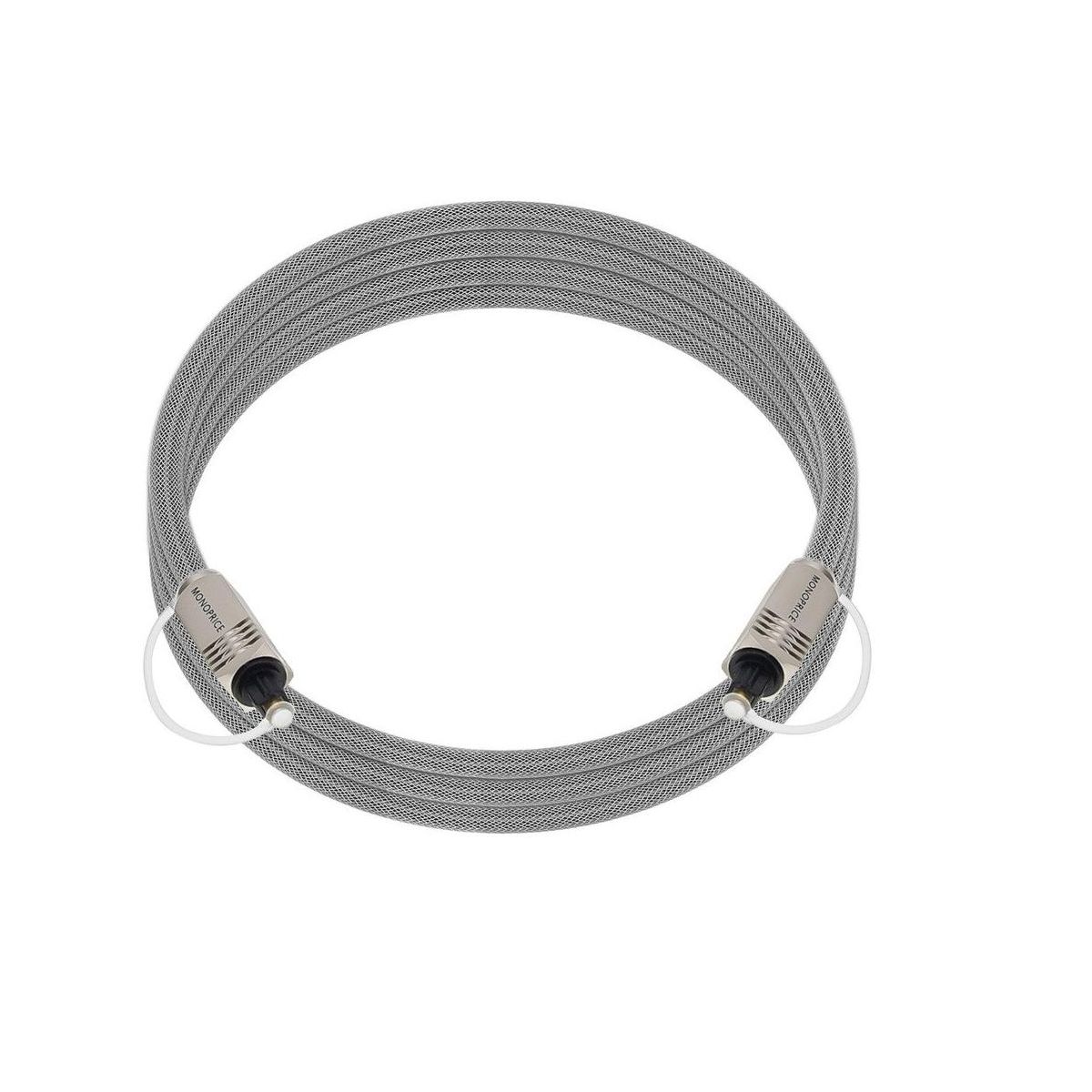 Monoprice Premium S/PDIF (Toslink) Digital Optical Audio Cable - Silver - 6 Feet | Heavy Duty Mesh Jacket, Metal Connector Heads, For Play Station,