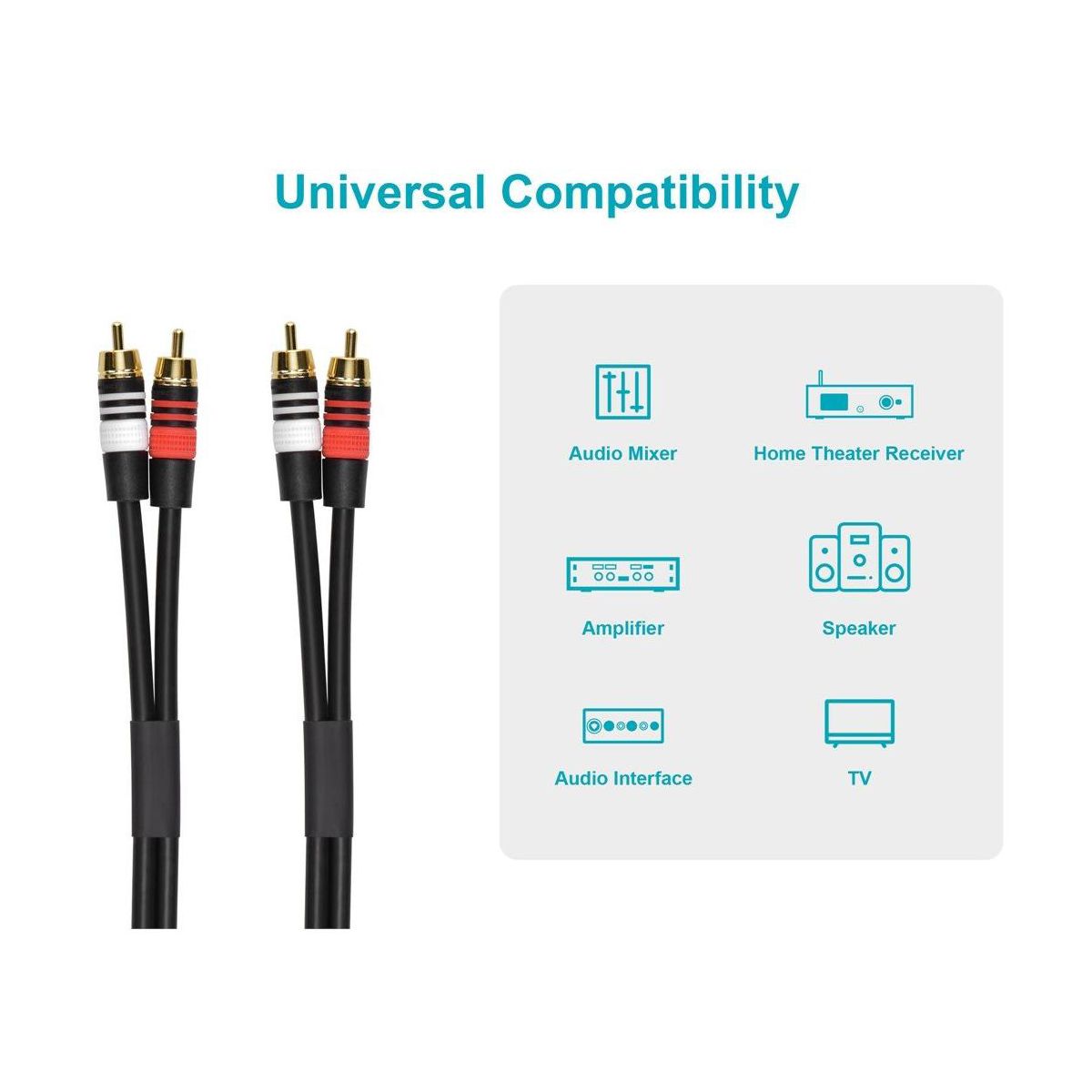 Monoprice Premium Two-Channel Audio Cable - 50 Feet - Black | 2 RCA Plug to 2 RCA Plug 22AWG, Male to Male
