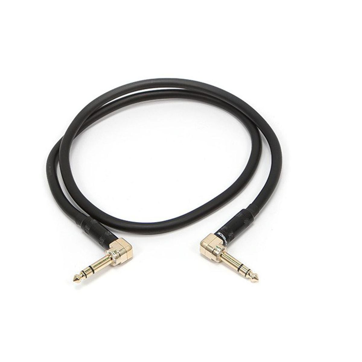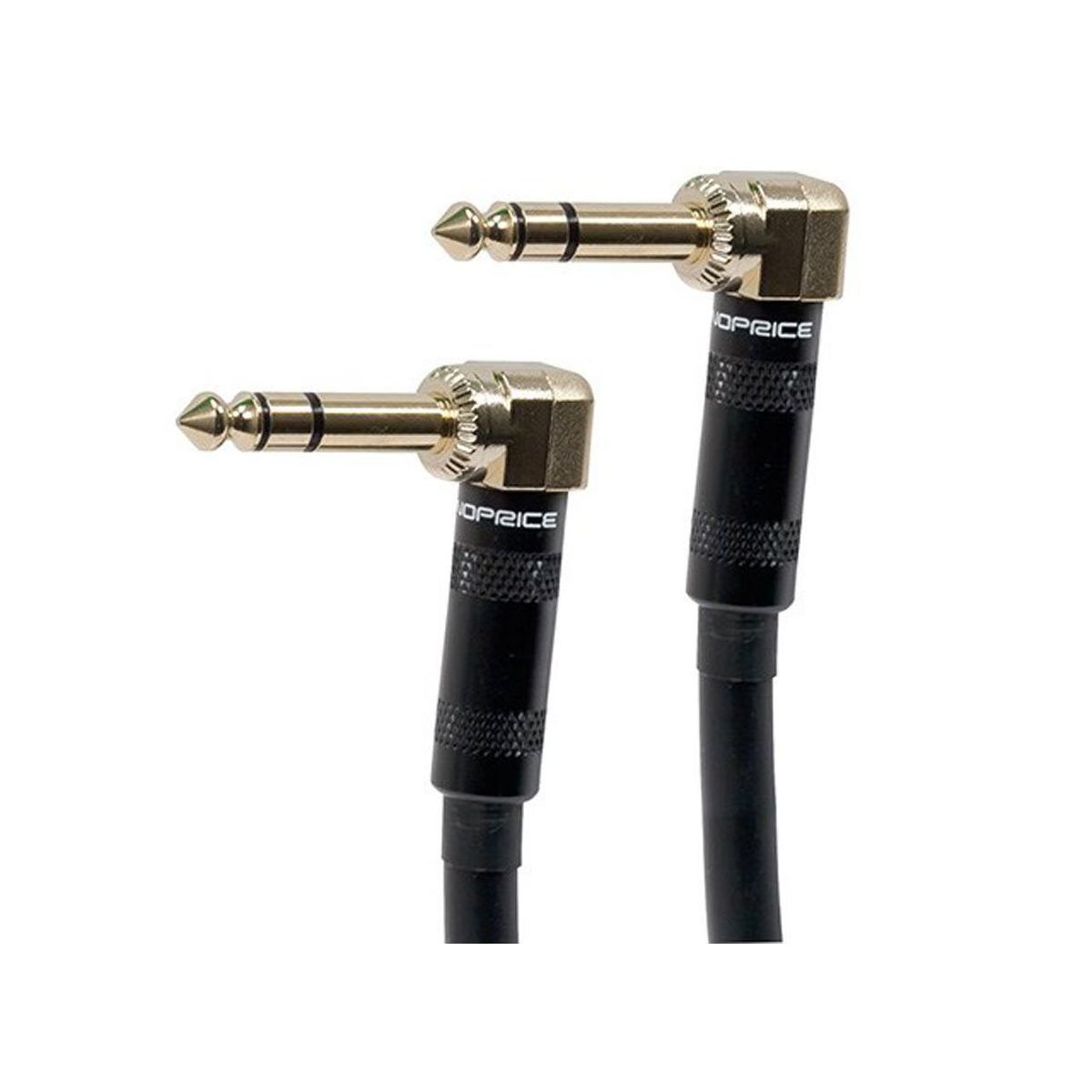 Connect speakers and other audio equipment with this Premium 1/4 TRS Patch Cable with 90-degree connectors from Monoprice!This cable features 90-degree TRS/Stereo plugs on each end. It uses 16 AWG stranded, pure copper conductors and employs copper braid shielding with 97.5 Percent coverage to ensure that stray radio frequency and electromagnetic signals do not degrade the audio quality of your performance. The plugs are gold plated to provide smooth, corrosion-free connections as well as maximum electrical conductivity.With two separate conductors and the common shield ground, this cable can be used as an unbalanced stereo patch cable or as a balanced mono patch cable.Note that this cable is intended for general audio use. For high-end, low-noise performance and recording use we recommend our Cloth Series cables, PIDs 601410, 601415, and 601420.