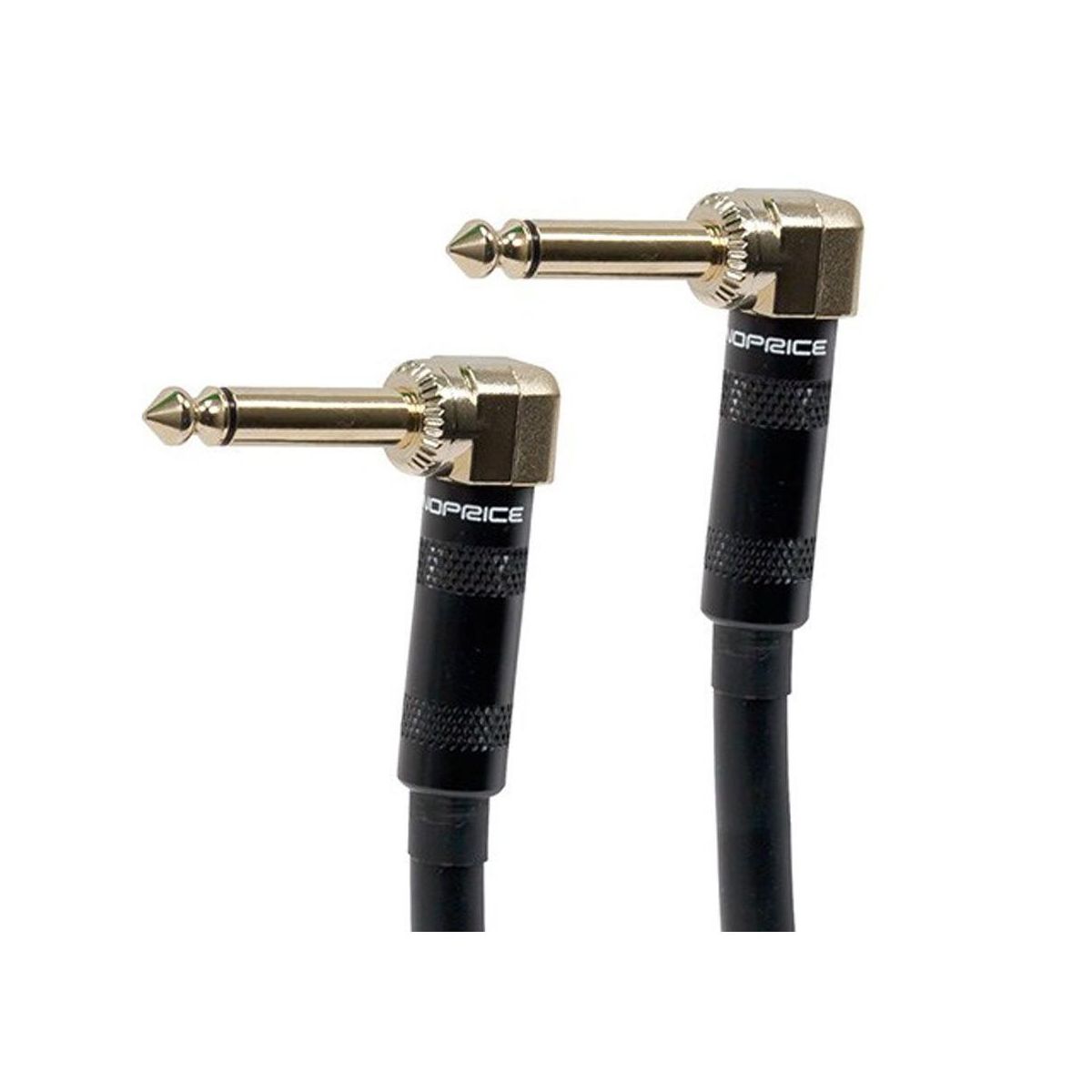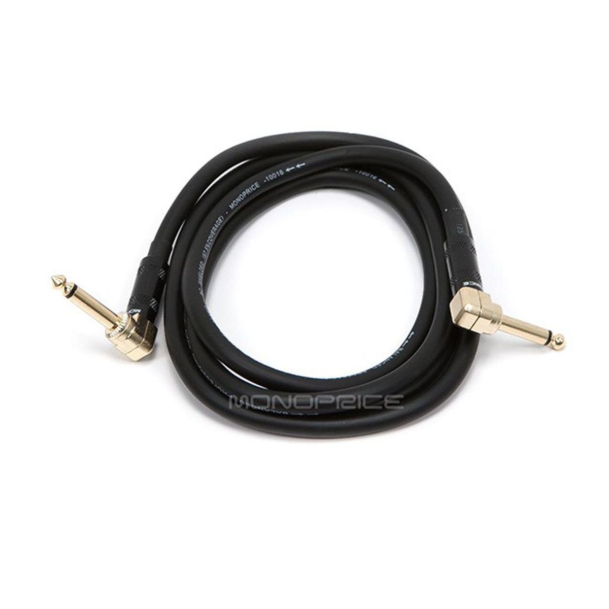Connect speakers and other audio equipment with this Premium 1/4 TS Patch Cable with 90-degree connectors from Monoprice!This unbalanced cable features 90-degree TS/Mono plugs on each end. It uses 16 AWG stranded, pure copper conductors and employs copper braid shielding with 97.5 Percent coverage to ensure that stray radio frequency and electromagnetic signals do not degrade the audio quality of your performance. The plugs are gold plated to provide smooth, corrosion-free connections as well as maximum electrical conductivity.Note that this cable is intended for general audio use. For high-end, low-noise performance and recording use we recommend our Cloth Series cables, PIDs 601410, 601415, and 601420.