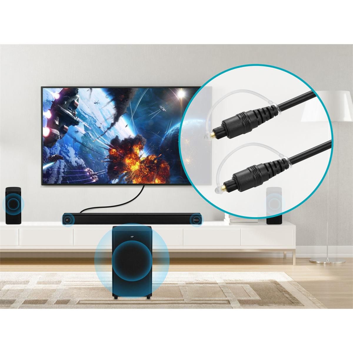 Monoprice S/PDIF (Toslink) Digital Optical Audio Cable - 25 Feet | Gold Plated Ferrule,Molded Strain Relief