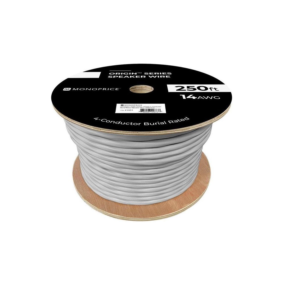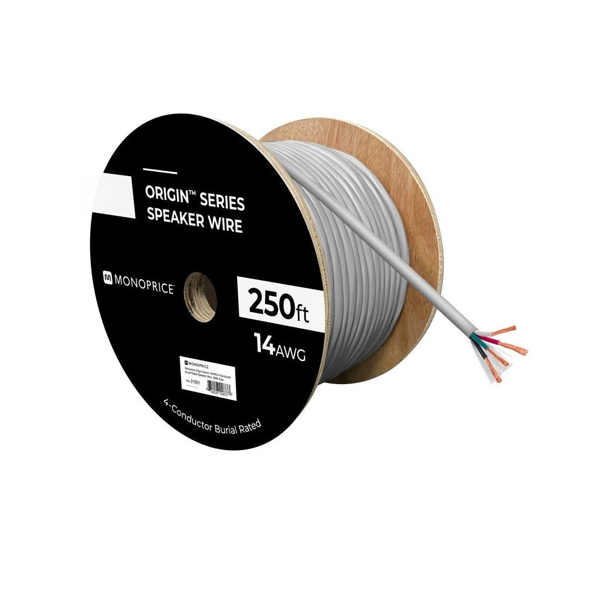 Monoprice Speaker Wire, Burial Rated, 4-Conductor, 14AWG, 250ft, Gray