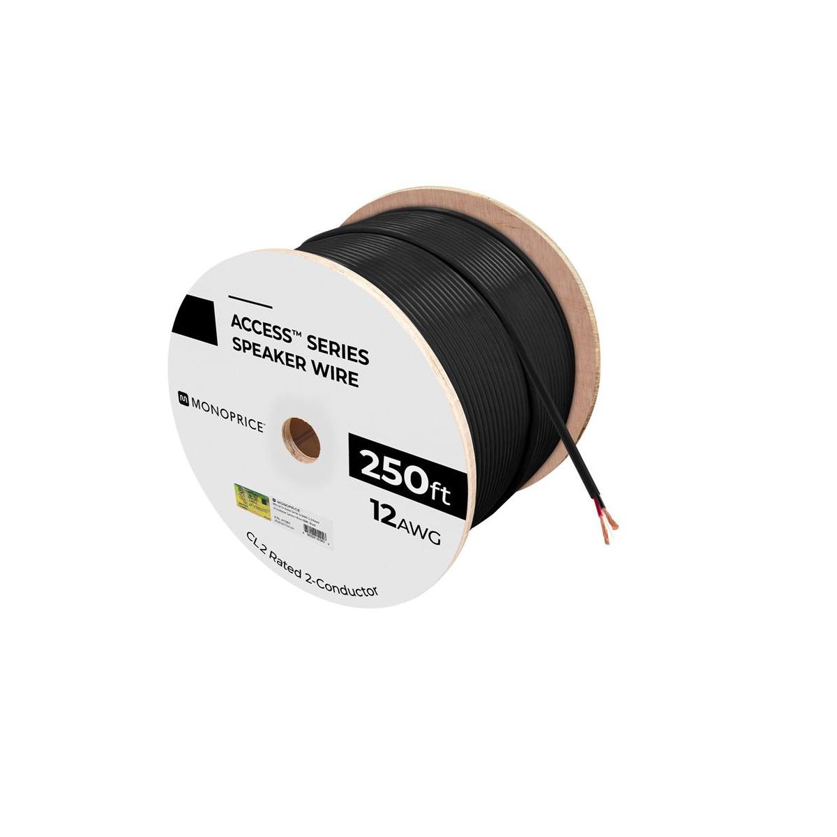 Monoprice Speaker Wire, CL2 Rated, 2-Conductor, 12AWG, 250ft, Black