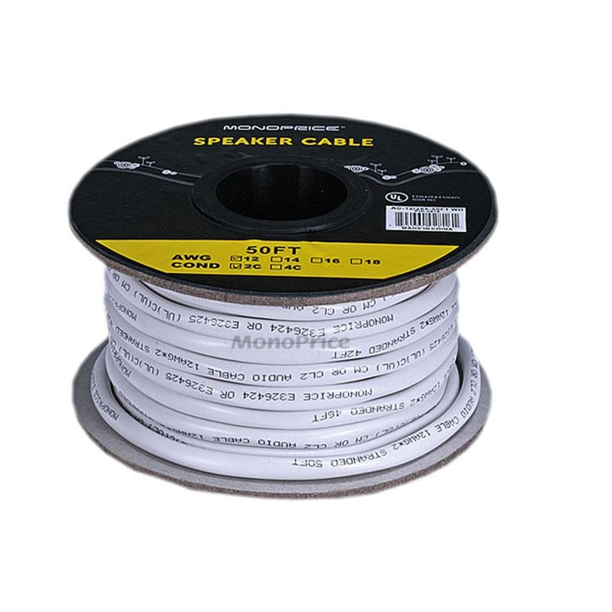 Monoprice Speaker Wire, CL2 Rated, 2-Conductor, 12AWG, 50ft, White