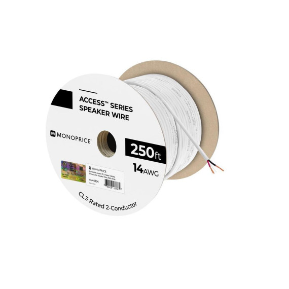 Monoprice Speaker Wire, CL3 Rated, 2-Conductor, 14AWG, 250ft, White