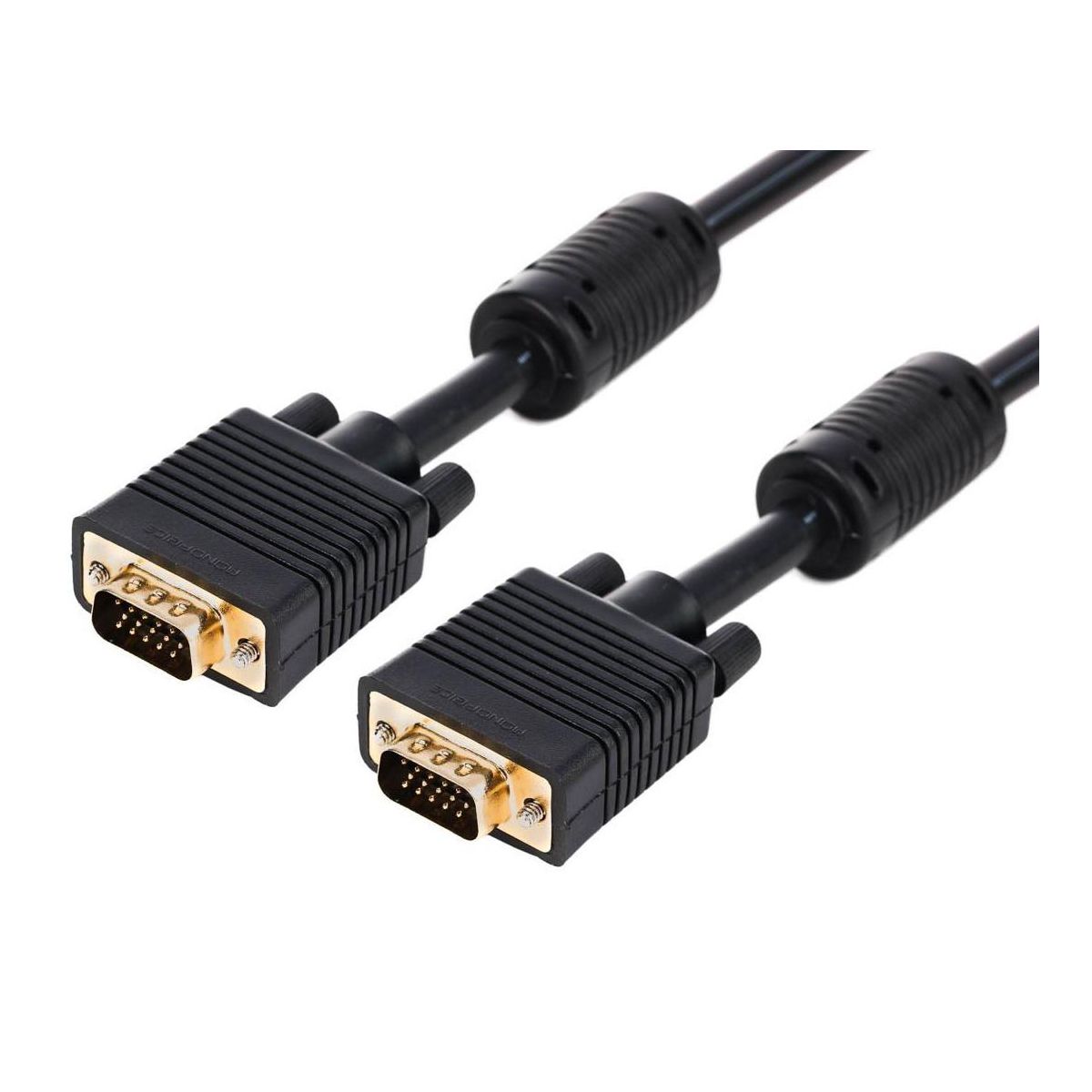 Despite the introduction of DVI and HDMI, the common VGA connection is still the primary connection for most computer monitors. This double-shielded cable is designed to handle analog VGA and extended VGA resolutions. It features gold-plated male DE-15 (aka HD-15 or DB-15) connectors on each end for smooth, corrosion-free connections. It includes ferrite cores at each end, which ensure that EMI and RFI interference will not enter your video system.
