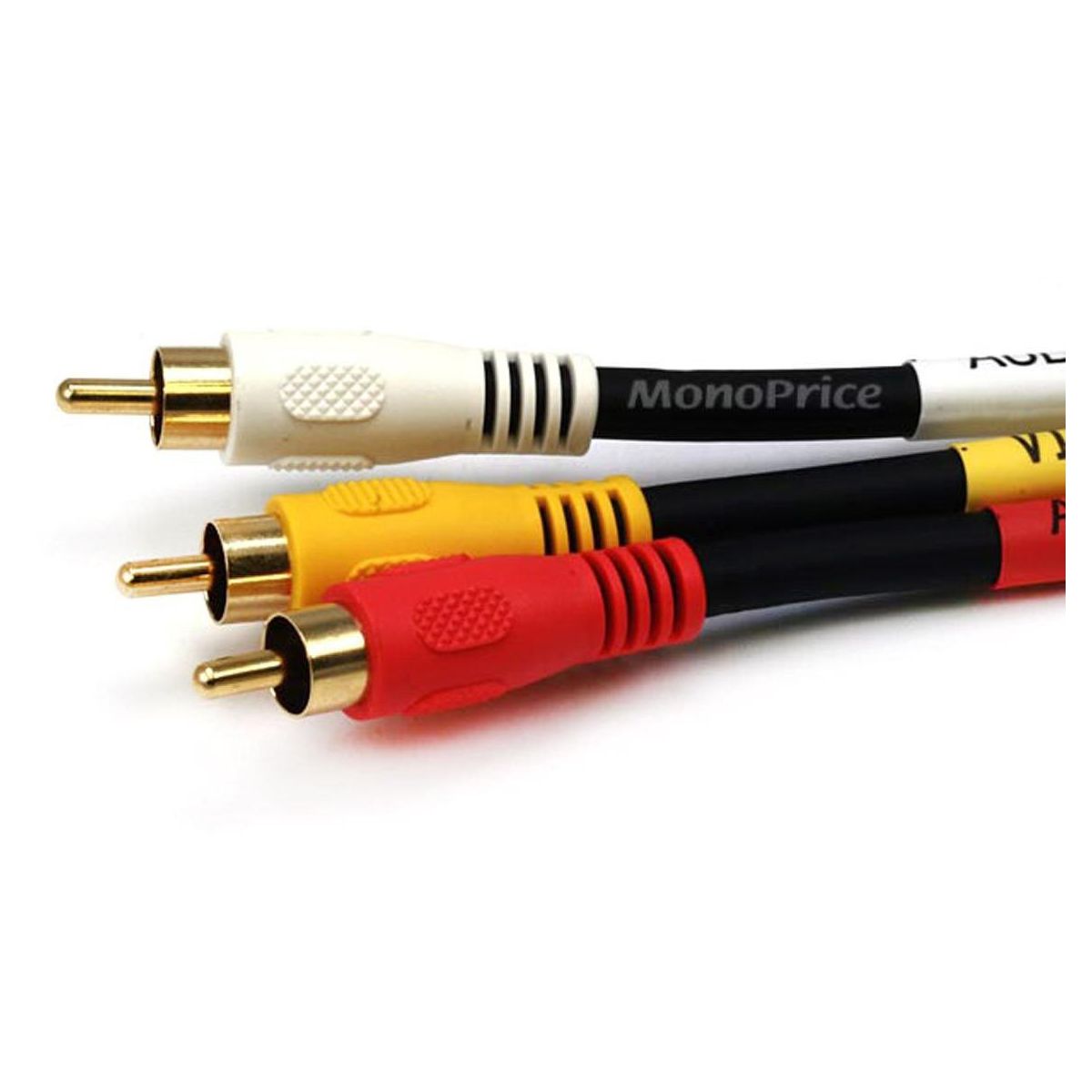 This heavy-duty composite video cable provides three RCA connections for composite video, plus left and right channel stereo audio. The cable is made of RG-59/U coaxial cable, which provides maximum signal shielding against EMI and RFI interference. The molded plugs are color coded and the connectors are gold-plated for smooth, corrosion free connections.