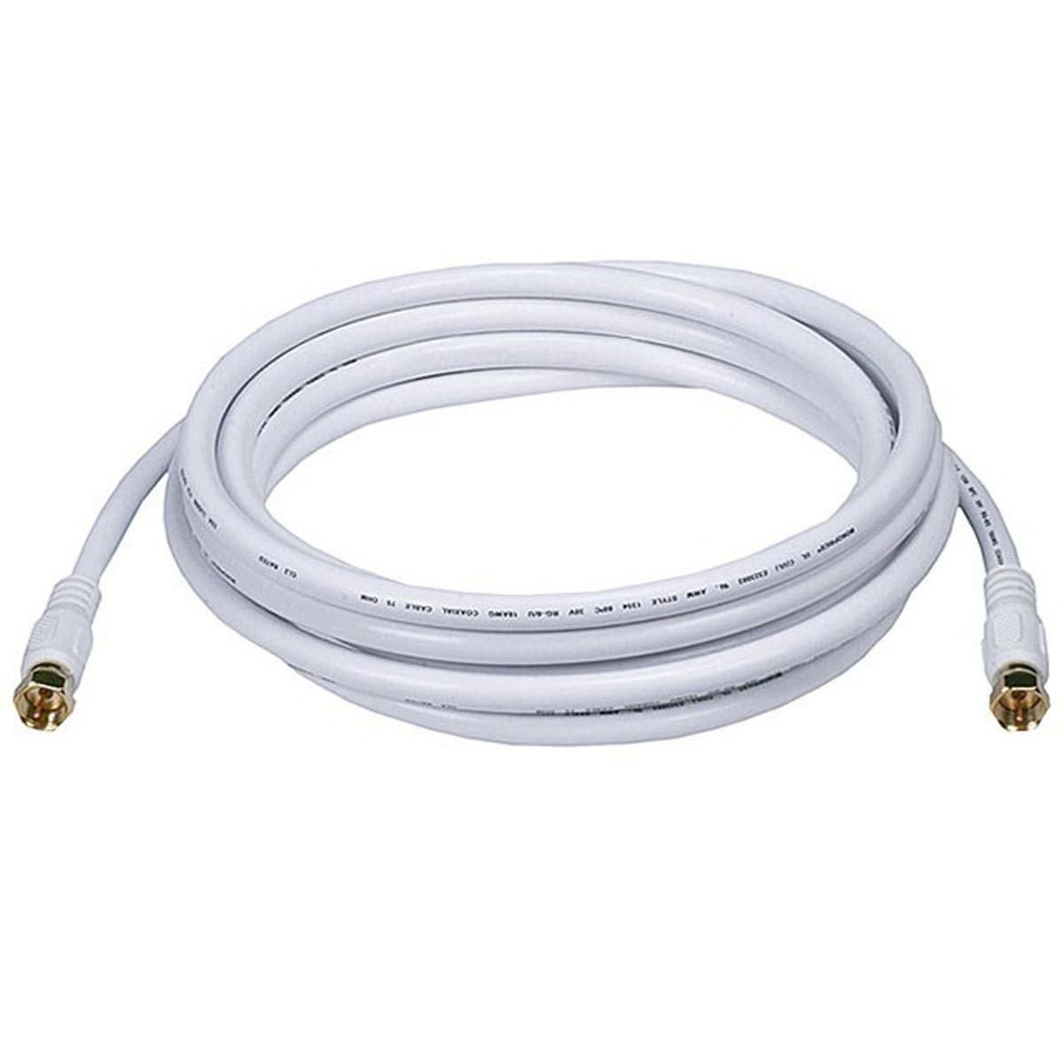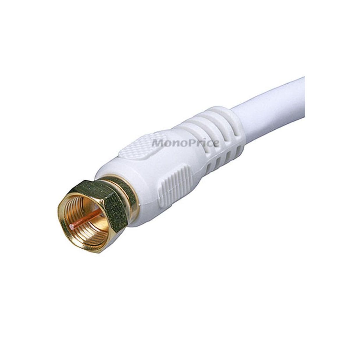 Monoprice Video Cable - 10 Feet - White | RG6 Quad Shield CL2 Coaxial Cable with F Type Connector