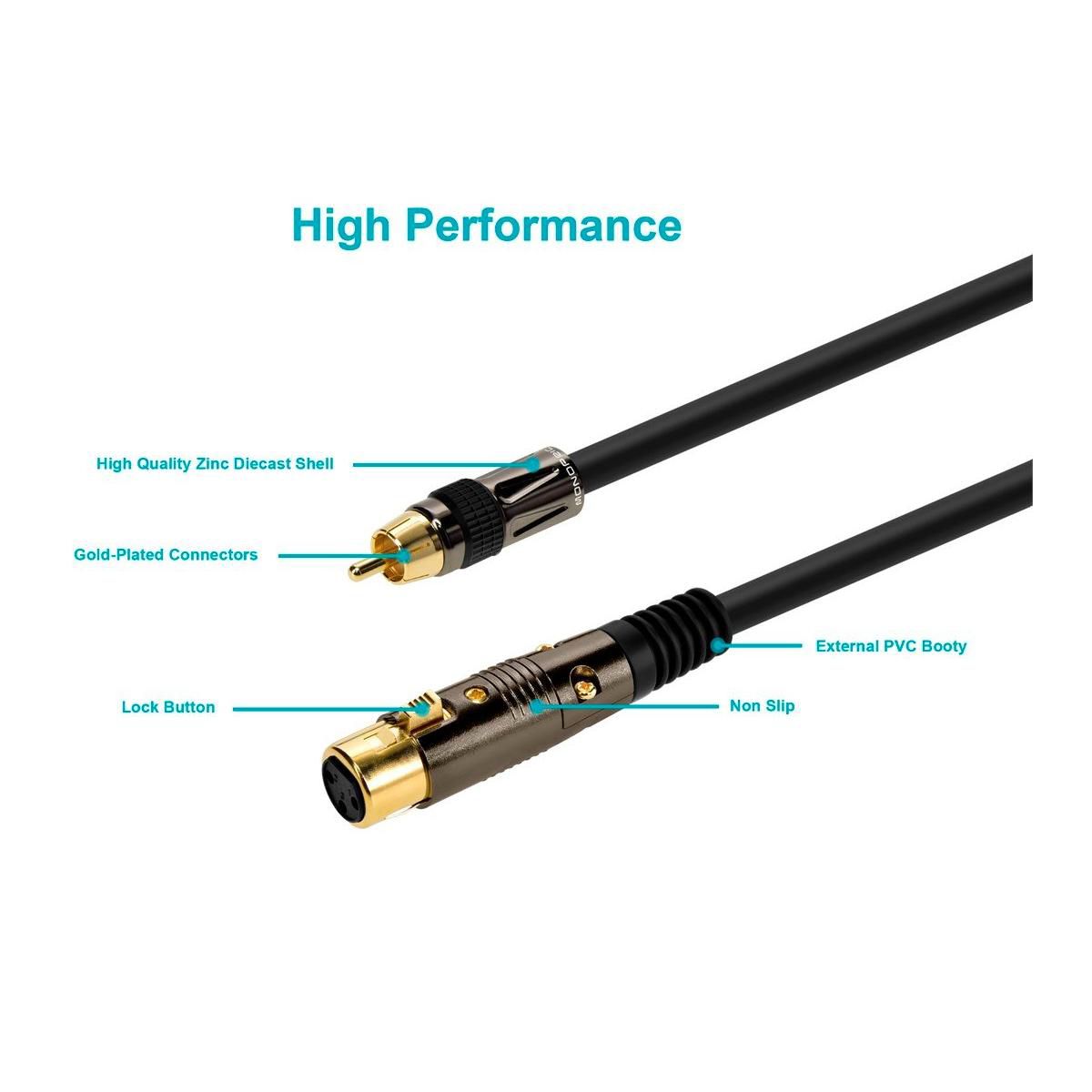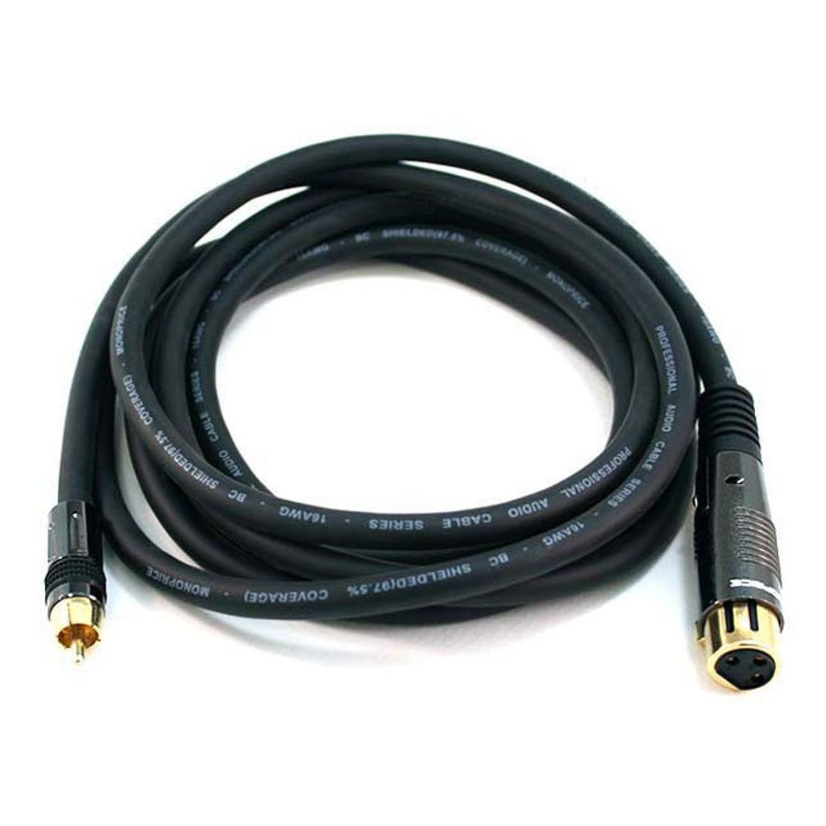 Monoprice XLR Female to RCA Male Cable - 10 Feet - Black | With E21Gold Plated Connectors | 16AWG Shielded Twisted Pair Oxygen-Free Copper Braid
