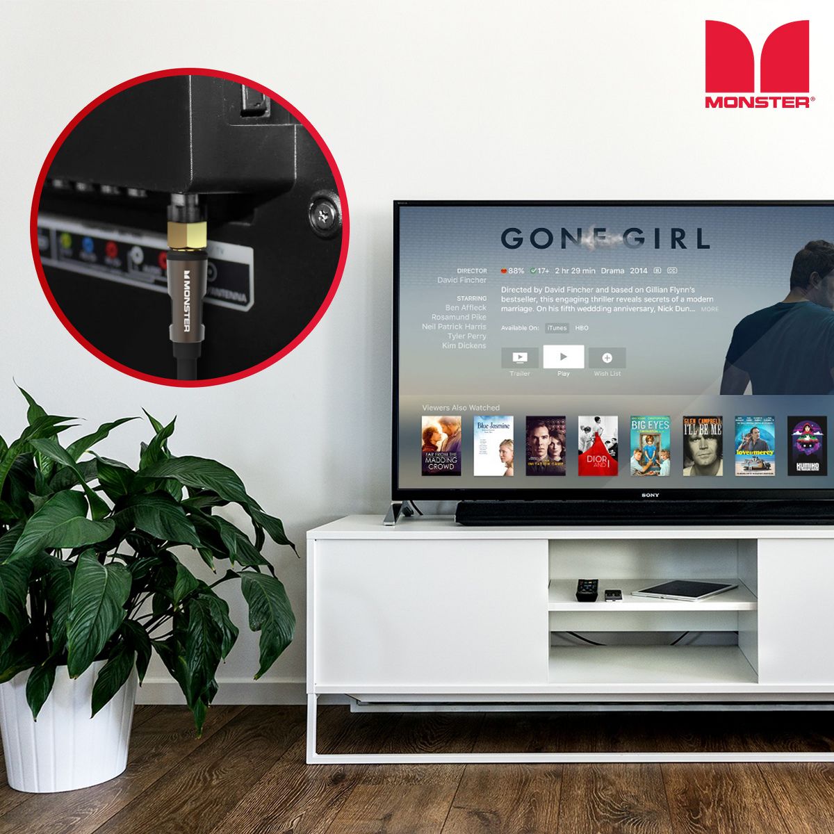 Monster Essentials Coaxial Video Cable - RG-6 Coax Cable Gold-Plated F-Pin Connector, Duraflex Protective Jacket, and Aluminum Extruded Shell - 25ft