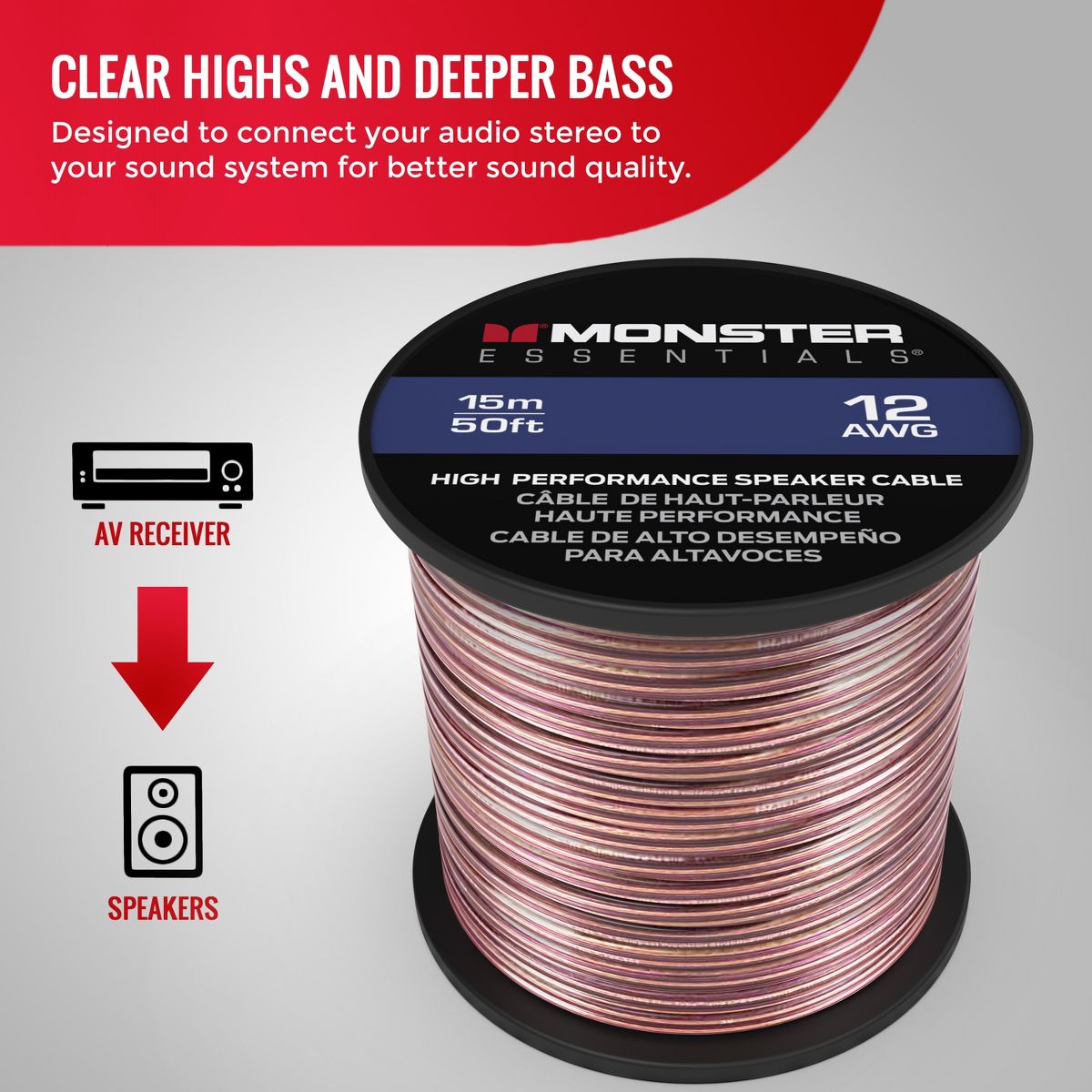 Monster Essentials High Performance Speaker Wire 12 Gauge Copper Clad Aluminum (CCA) Speaker Cable 50 FT Spool for Receivers, Speakers, and Car Audio