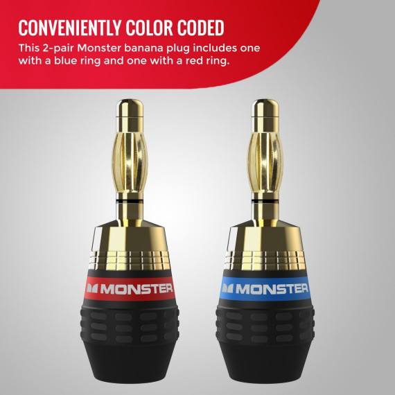 Monster XP QuickLock Connectors - Best Banana Speaker Wire Plugs for DIY Installations - 2 Pair (4 Total)