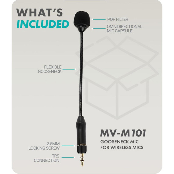 Movo MV-M101 Gooseneck Omnidirectional Lavalier Microphone- Compatible with DJI Mic/Rode Wireless Go Series Wireless Transmitters
