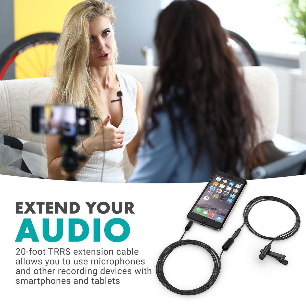 Movo PM10EC6 20-foot (6m) TRRS Female 3.5mm to TRRS Male 3.5mm Microphone Extension Cable for Smartphones