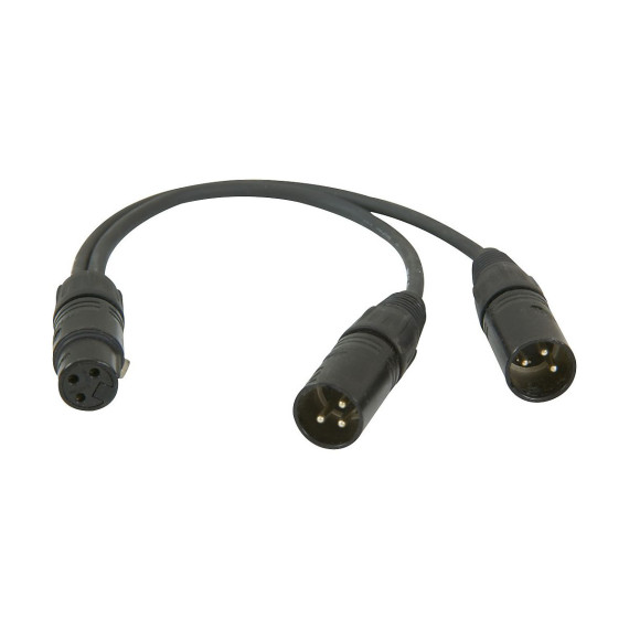 The YMXF2XM-1 cable features a high-quality dual XLR "Y" Male connector on one side and a female XLR connector on the other.