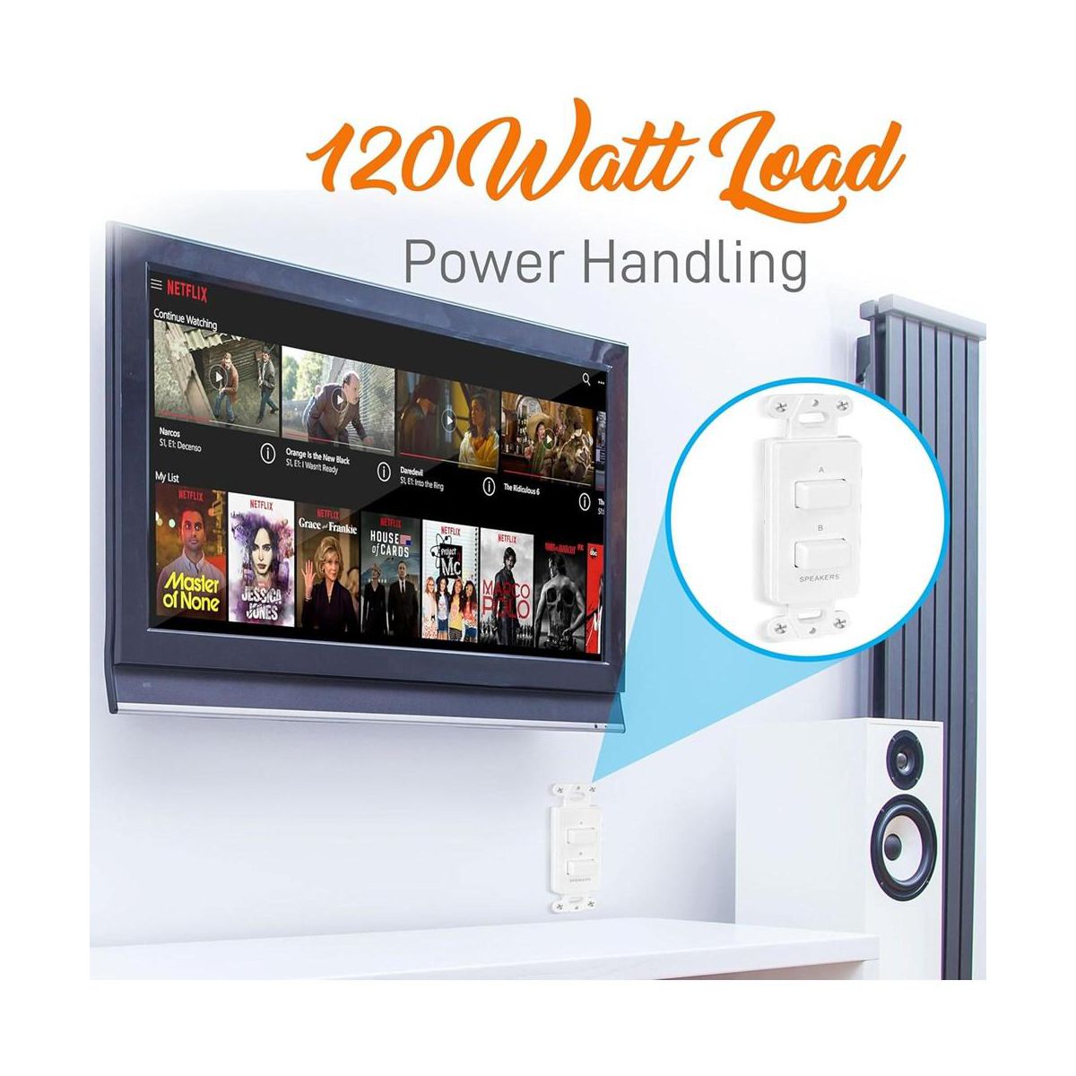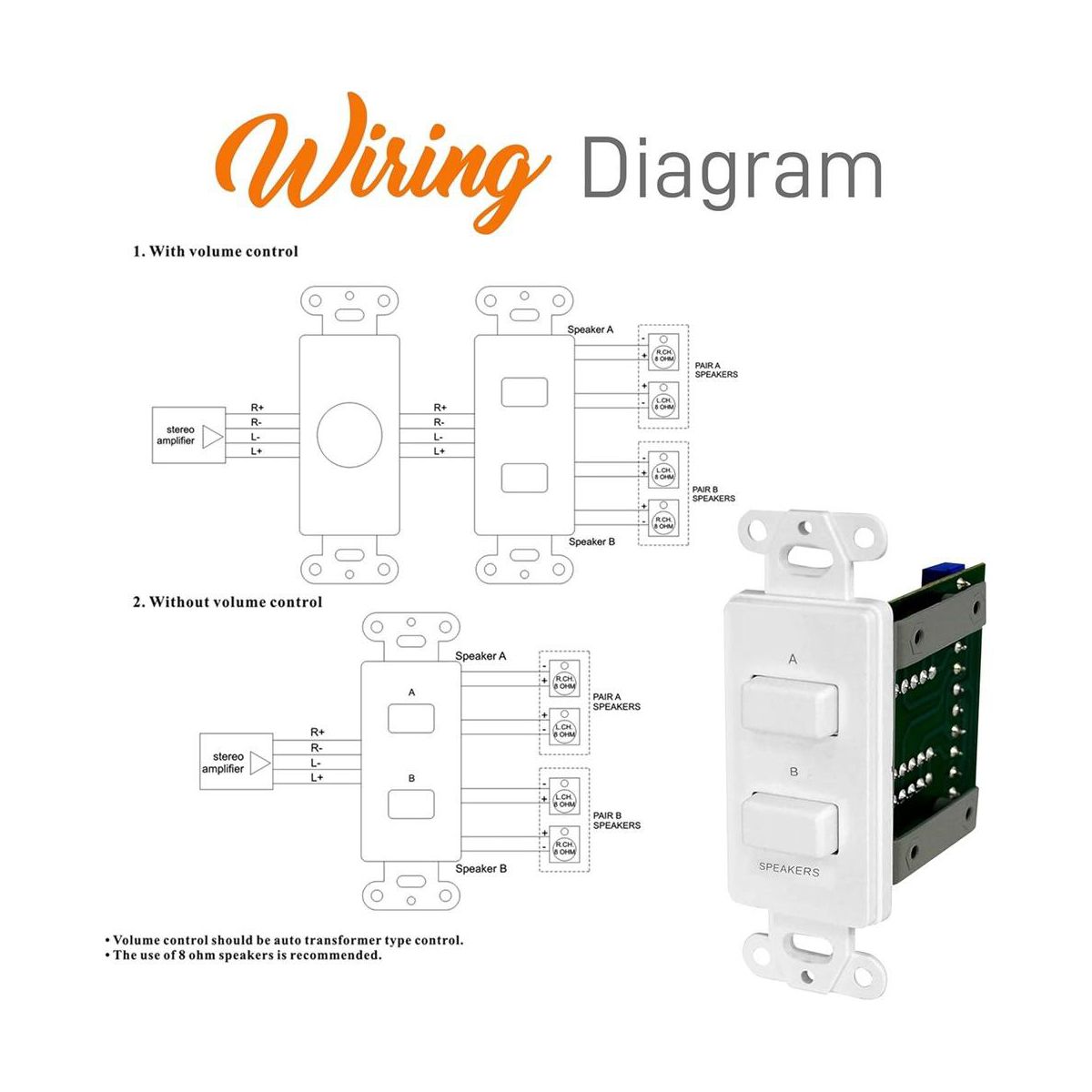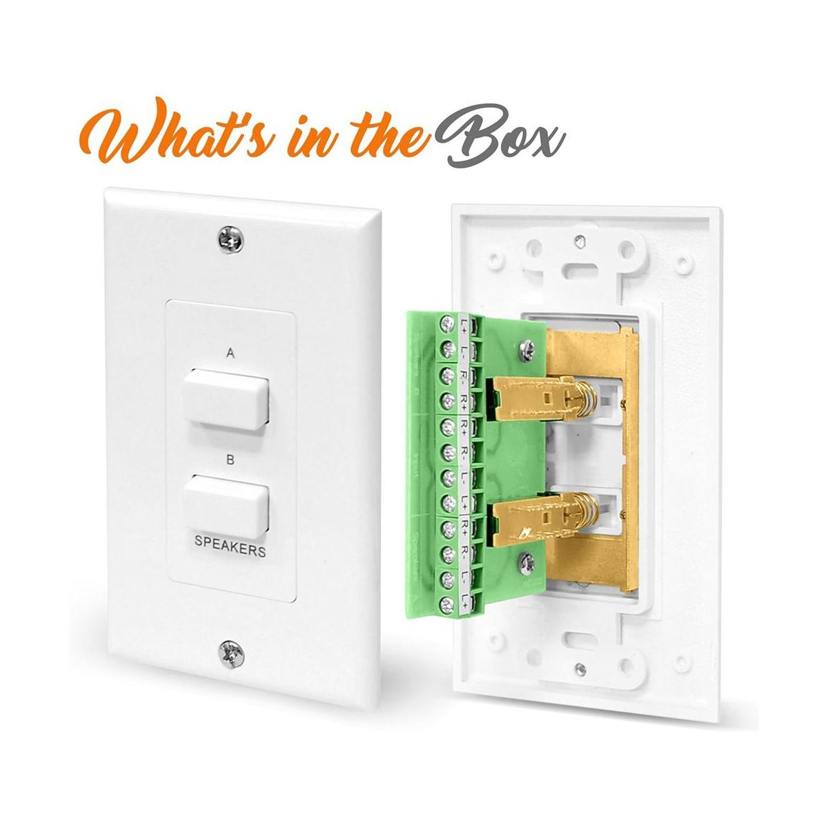 Pyle In-Wall Speaker Selector Switch, 120W Wall Plate Speaker Control for A/B Speakers, Universal Standard Size - White (PVCS2)