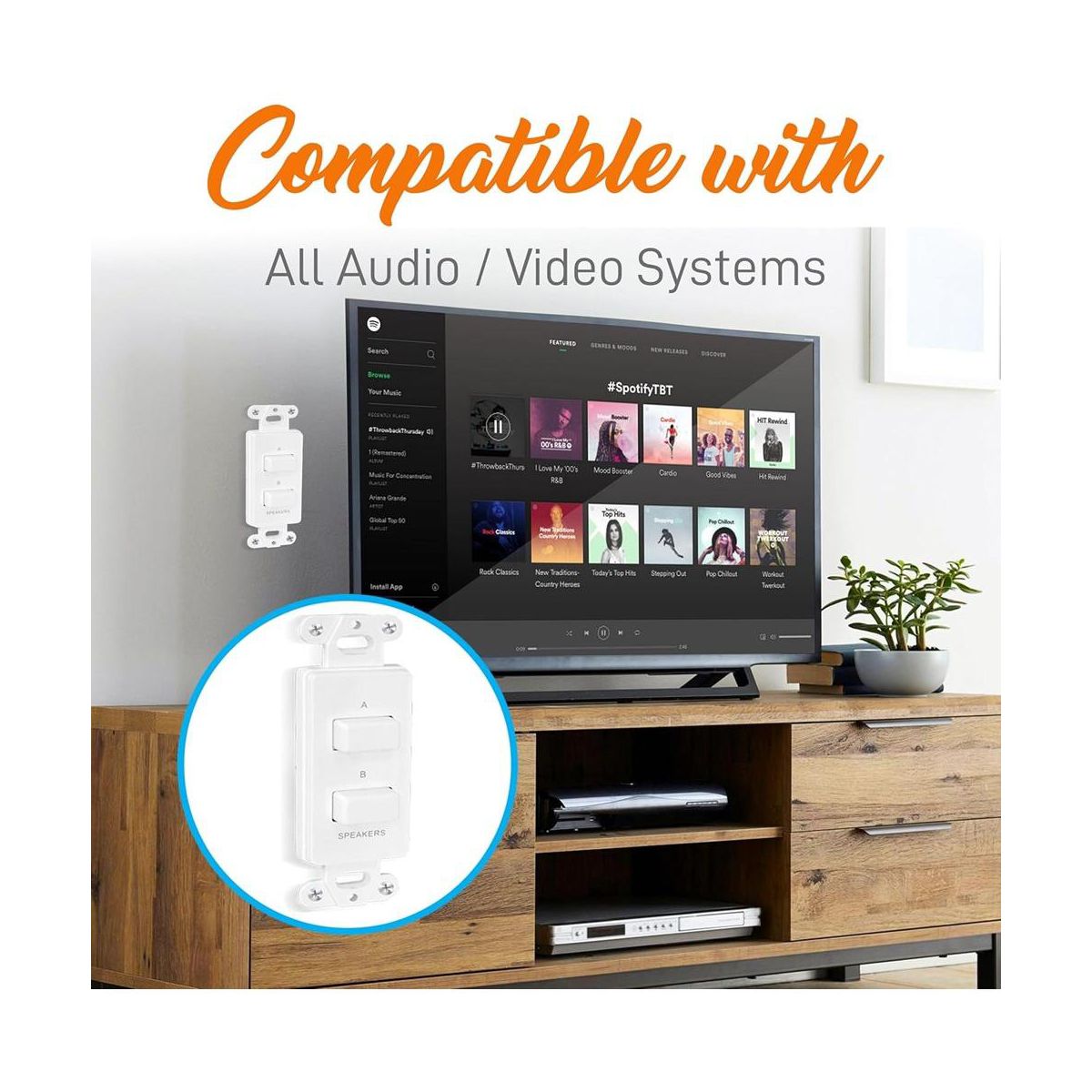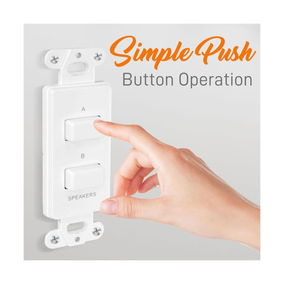 Take control of your home audio setup with the Pyle In-Wall Speaker Selector Switch, designed to offer convenient and flexible control over your speaker system. The PVCS2 installs easily in a standard electrical junction box, just like a light switch, allowing you to direct your amplifier's output to two sets of speakers. With simple push-button operation, you can choose between activating the A speakers, B speakers, or both simultaneously. This switch is compatible with all audio/video systems and fits seamlessly into your wall with its universal standard size. The 120-watt load power handling ensures robust performance, while the included decorative frame plate cover provides a clean and professional installation.