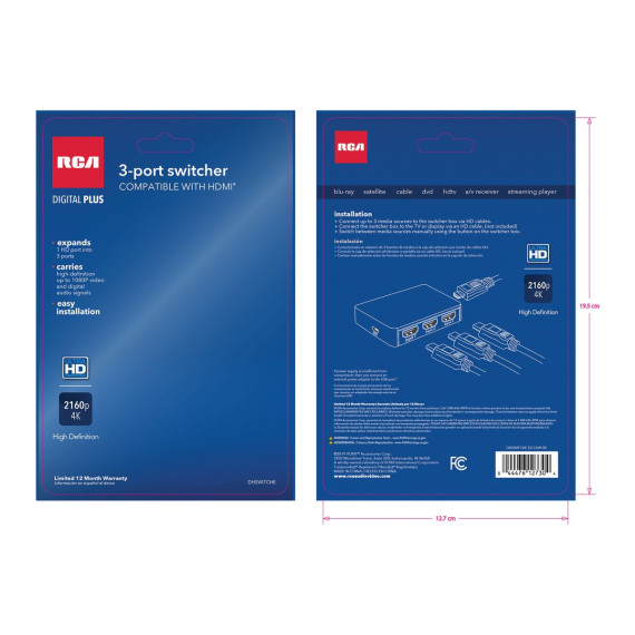 Need to split an HDMI® signal 3 ways? Use this RCA HDMI® Switcher! It expands 1 HDMI® port into 3. It supports 480i, 480p, 720p, 1080i and 1080p screen resolutions and digital audio signals. It is easy to install and simple to operate. Turn to this HDMI® splitter to solve cabling conundrums!_