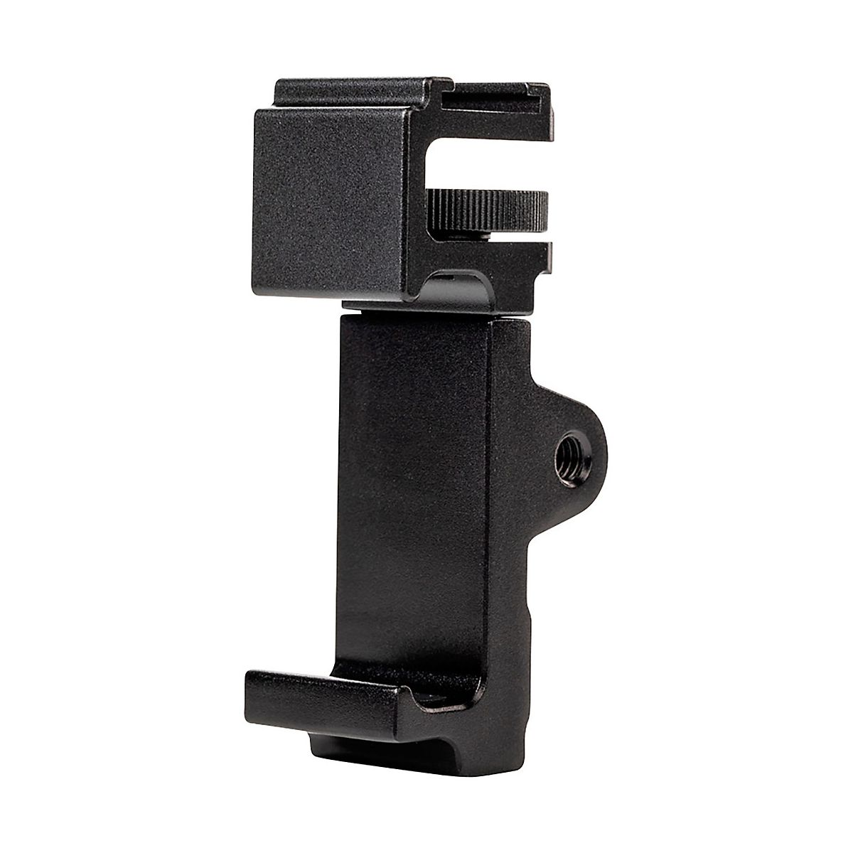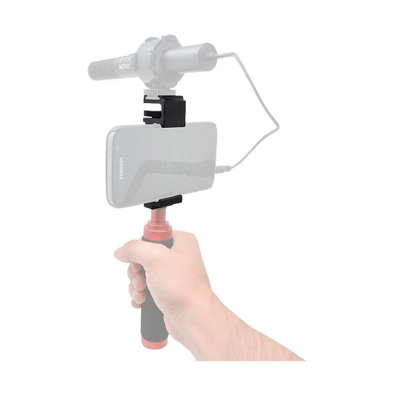 The Saramonic SR-BSP1C is a smartphone clamp designed for tripods, monopods, stands and stabilizing handgrips that enables to shoot more stabilized photos and video. It also lets attach essential accessories to phone like lights, microphones, wireless systems and more. The clamp can be confidently adjusted to fit smartphones up to 3.6" wide with a case and it can be mounted to shoot cinematic horizontal landscape video, or vertical video for Facebook, SnapChat, Instagram and more.Rugged and Well EquippedThe SR-BSP1C features an all-aluminum construction for ultimate reliability and durability, yet it’s still impressively lightweight. It features three metal 1/4" 20 tripod threads, so rig can easily be mounted to a tripod, monopod, handgrip or elsewhere, and be used to mount additional accessories. A cold shoe mount is provided on the clamp to attach microphones, wireless receivers, LED lights and other vital accessories.Stability and VersatilityDon’t let poor stability ruin the quality of smartphone videos and photos. Shoot more stable and smoother video and photos with the SR-BSP1C, achieve more visually appealing angles and improve the light and sound quality by attaching the accessories need. This is an essential item for making smartphone photos and videos look like professionally produced content.