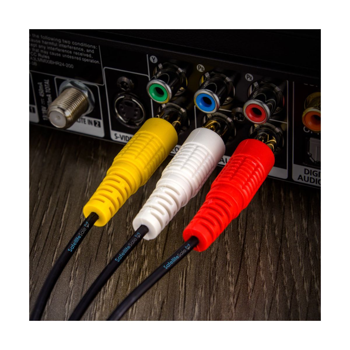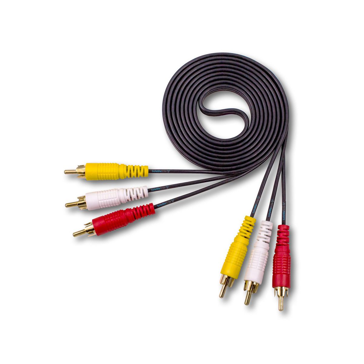 SatelliteSale 3-Male to 3-Male RCA Male Cable For Business Audio Video Composite Cable Universal Wire PVC Black Cord connects your audio devices with its right and left plugs( white and red colors), transmitting clear stereo audio. The central pin ( yellow color ) is used for composite video data. Our RCA cord is a perfect match for both residential and commercial use as we offer different rca cables sizes, starting with 3 feet long and reaching up to 100 feet long. Regardless of the size, the selected rca cable will be a perfect cost-effective option. Every audio/video RCA cab audio video av for sale cord we sell is covered with a durable PVC jacket to protect it from unwanted bending damage and to increase its durability. Moreover, gold-plated connectors will resist oxidation and serve much longer. Enjoy the clarity of the sound and picture without any distortion and signal loss, even at extended lengths.  Our SatelliteSale 3-Male to 3-Male RCA Audio AV cable value cab cales cable is compatible with a wide range of modern and previous versions of audio/video devices, such as DVD players, TVs, Wii boxes, VCRs, home theatre systems, gaming consoles, soundbars, speakers, subwoofers, Blu-Ray players, and AV receivers. Works like a charm on modern TVs. We assure the lifetime service of each RCA surround sound system record player value cab cales cable to deliver a positive experience to our clients.