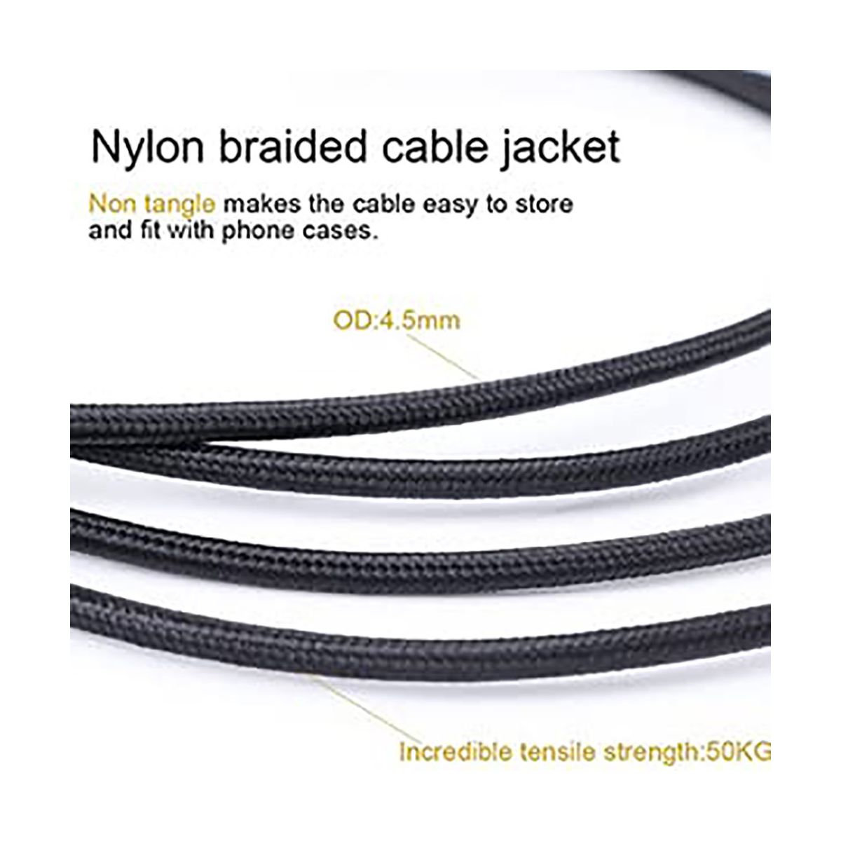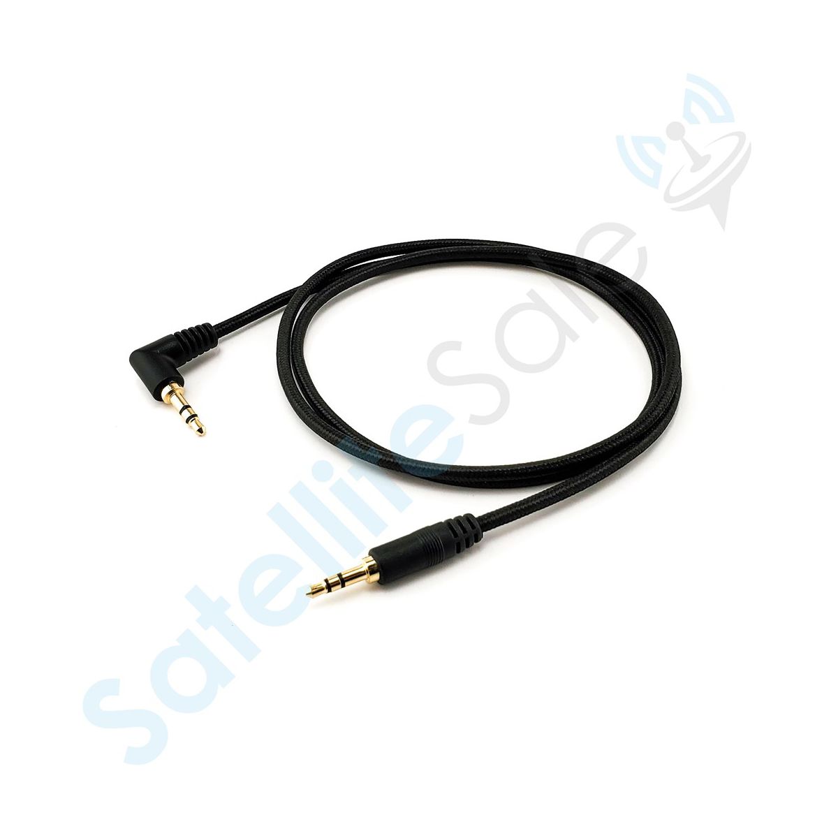 SatelliteSale Auxiliary 3.5mm Right Angle Audio Jack Male to Male Digital Stereo Aux Cable Universal Wire Black Nylon Cord 6 feet