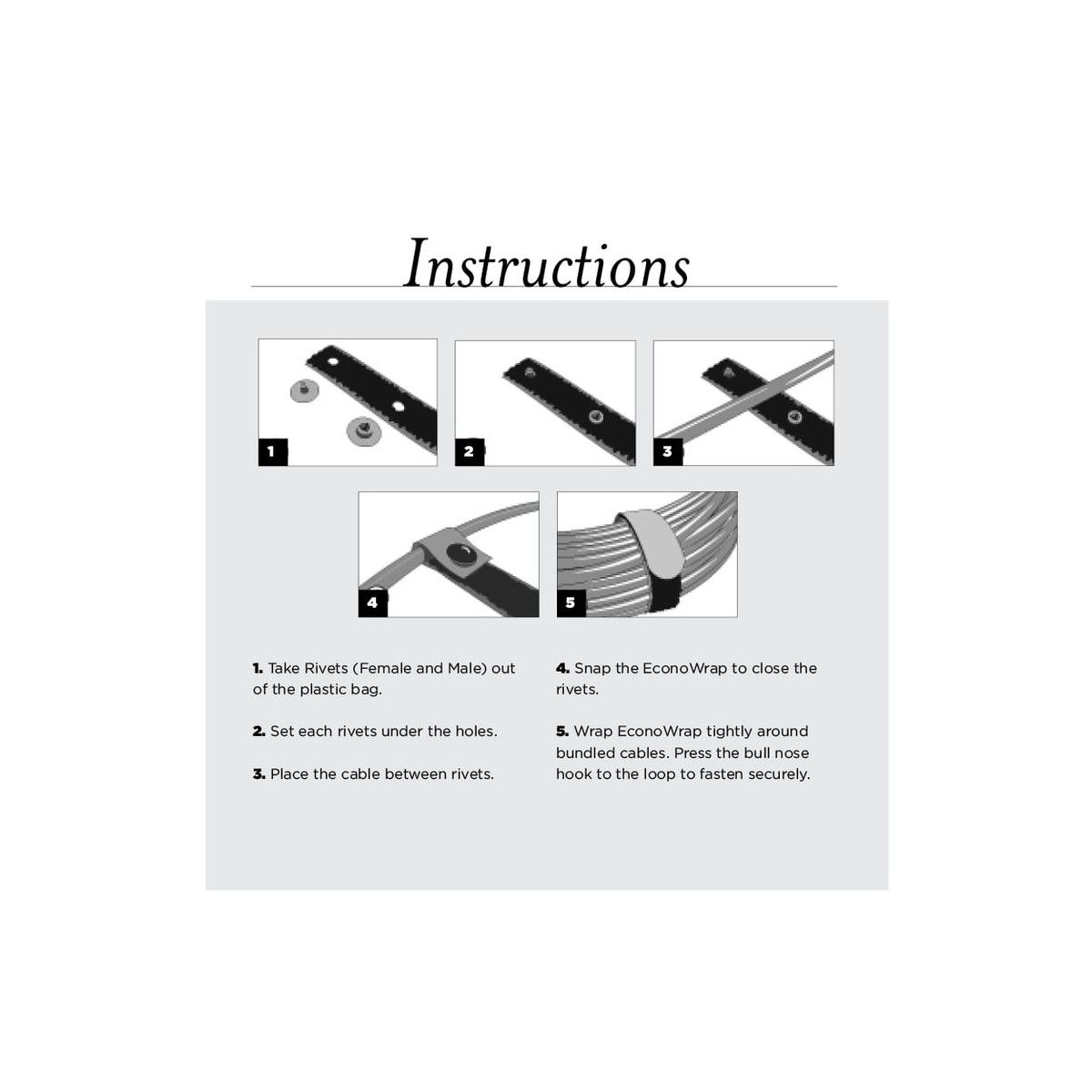 Available in a variety of widths and lengths, the EconoWrap with Snap-On is great for controlling cables and cords. The Snap-on attachment installs the EconoWrap with rivets, so it slides freely on the cable.