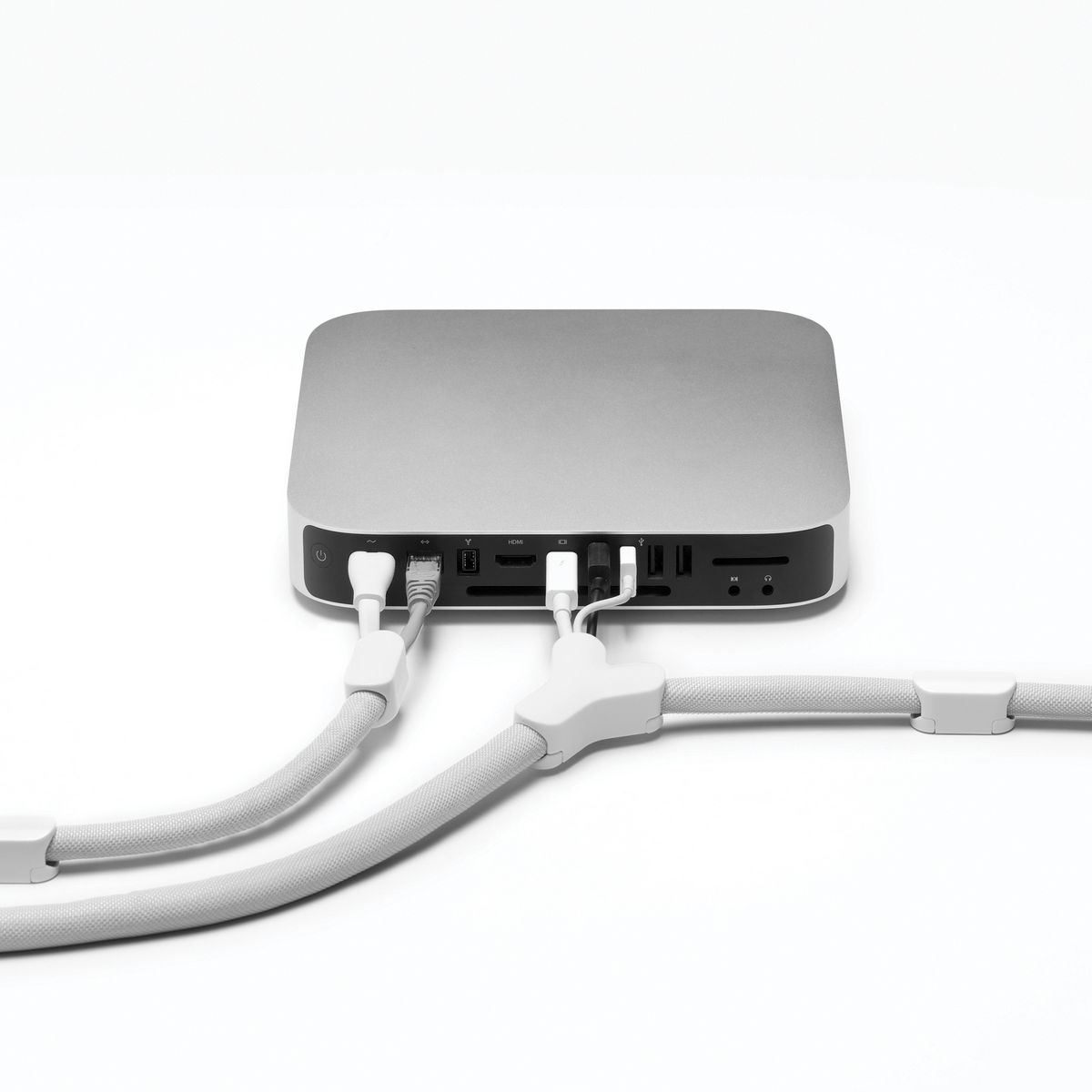 Wave goodbye to that mangled mess of wires running from the back of your computer or behind your TV. Soba® from Bluelounge® bundles and directs up to 3 cables at once to tidy up and keep things organized. Vortex technology zips up your cables and auto-coils the White cable runner tube. Sticky bits help route the bundled cable where you need it such as under desks, along a wall, or behind a piece of furniture.