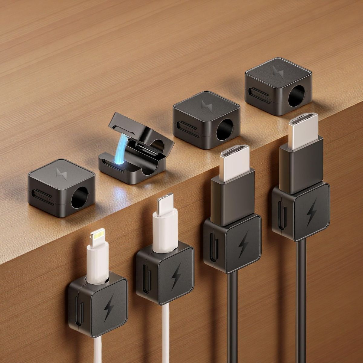 FONTOI 6 Pack Magnetic Cord Organizer, Cable Clips Holder for Nightstand, Cable Clips Wire Management, Universal Fit, Black, 0.78"*0.44"*0.78"