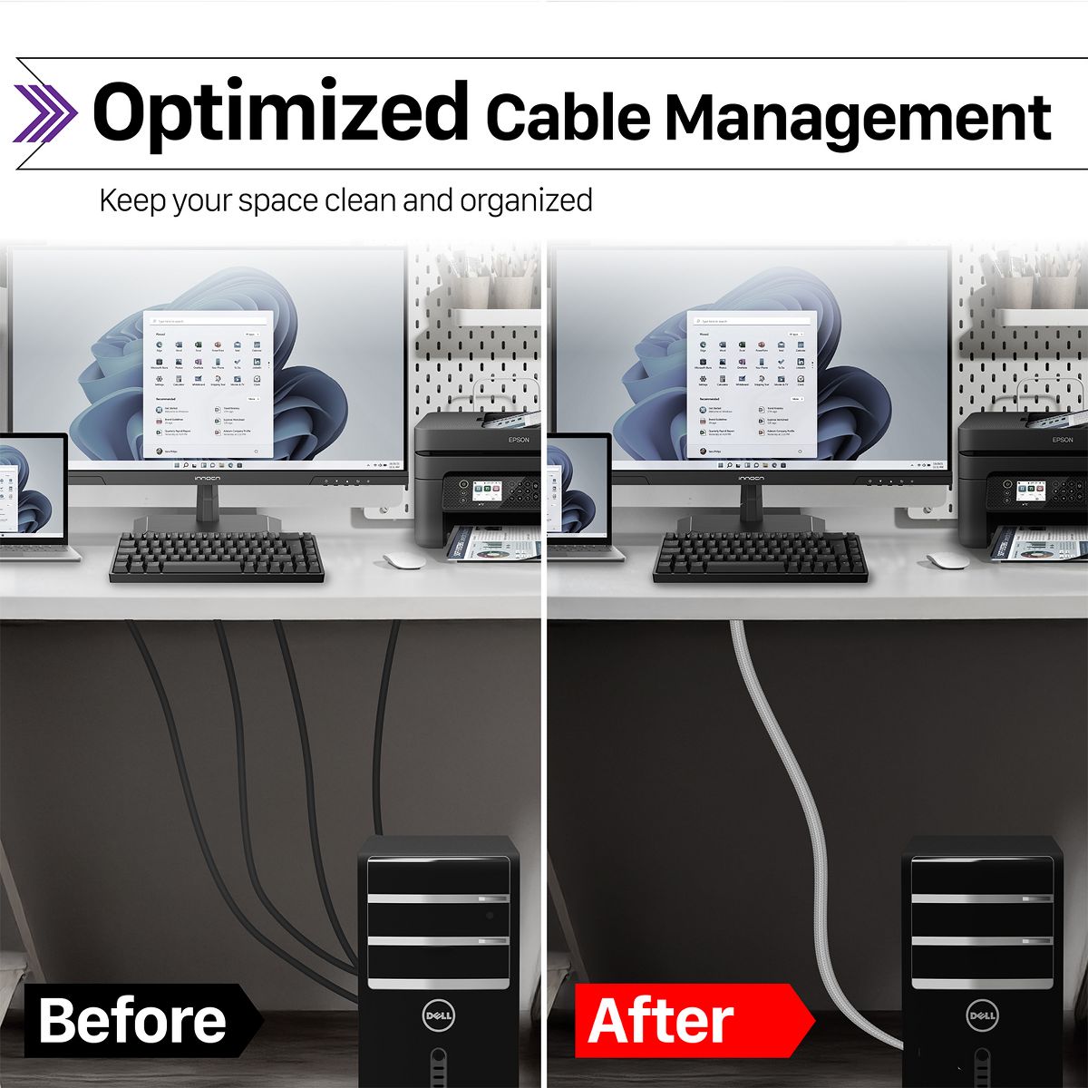 The braided construction of this sleeve provides an essential layer of protection for your cables. It shields them from common hazards like abrasion, pet chewing, and dust accumulation. This durable barrier will help extend the lifespan of your cables and maintain their optimal performance.