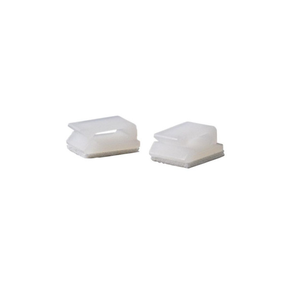 Gardner Bender Stick-on Plastic Low Voltage Wire Clip (10-pack). Plastic bell and sound wire stick-on clips, with peel-off adhesive backing. These self-adhesive clips affix firmly to walls and baseboards without nails to fasten bells, speakers, telephones, and other small wires. The adhesive base holds strong. Its miniature design allows discreet installation.