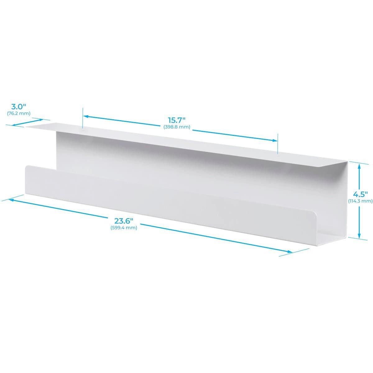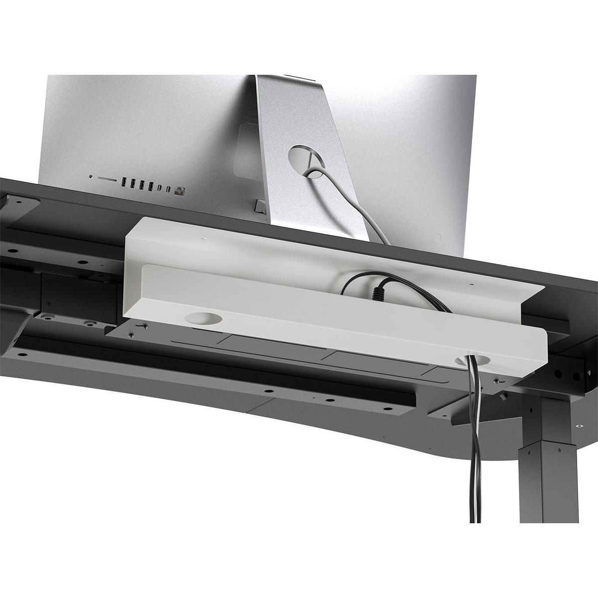 Made of steel for a durable platform, it can hold power strips, power adapters, and various cables to help keep wires in order. It is attached by screws under most wood or wood-composite desks.