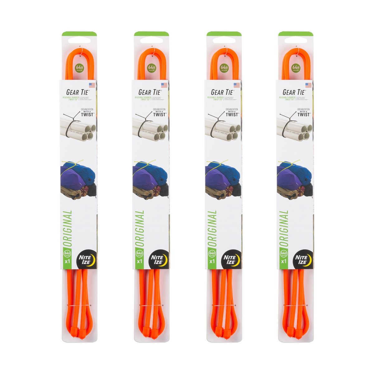Nite Ize Gear Tie Reusable Rubber Twist Tie - Bendable Rubber Ties for Indoor & Outdoor Use - Reusable - 64", Bright Orange (4 Pack)