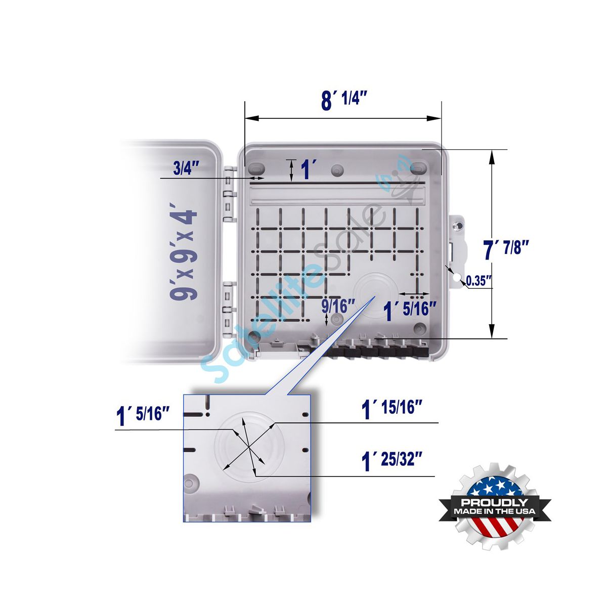 SatelliteSale Weatherproof Junction Box Heavy Duty Enclosure 9x9x4 Inches UV-Rated Thermoplastic Alloy Made In USA