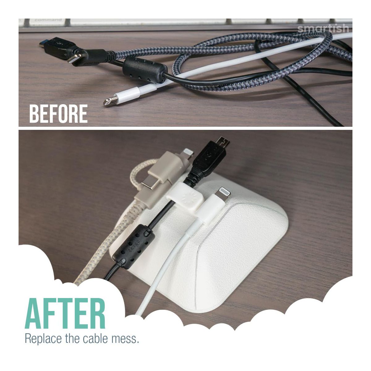 Cable Wrangler is here to get your messy cables back in line. Let’s be real… there’s a good chance you’re within 3 feet of some tangled charging cables right now. With the Cable Wrangler's powerful magnet, your cords snap easily in place and stay neat and organized until you need them again. It's an "attractive" solution, if we do say so ourselves