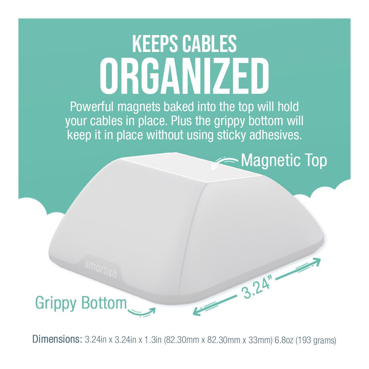 Smartish Magnetic Cord Holder - Bigger Cable Wrangler Desktop Organizer - Snow Day White