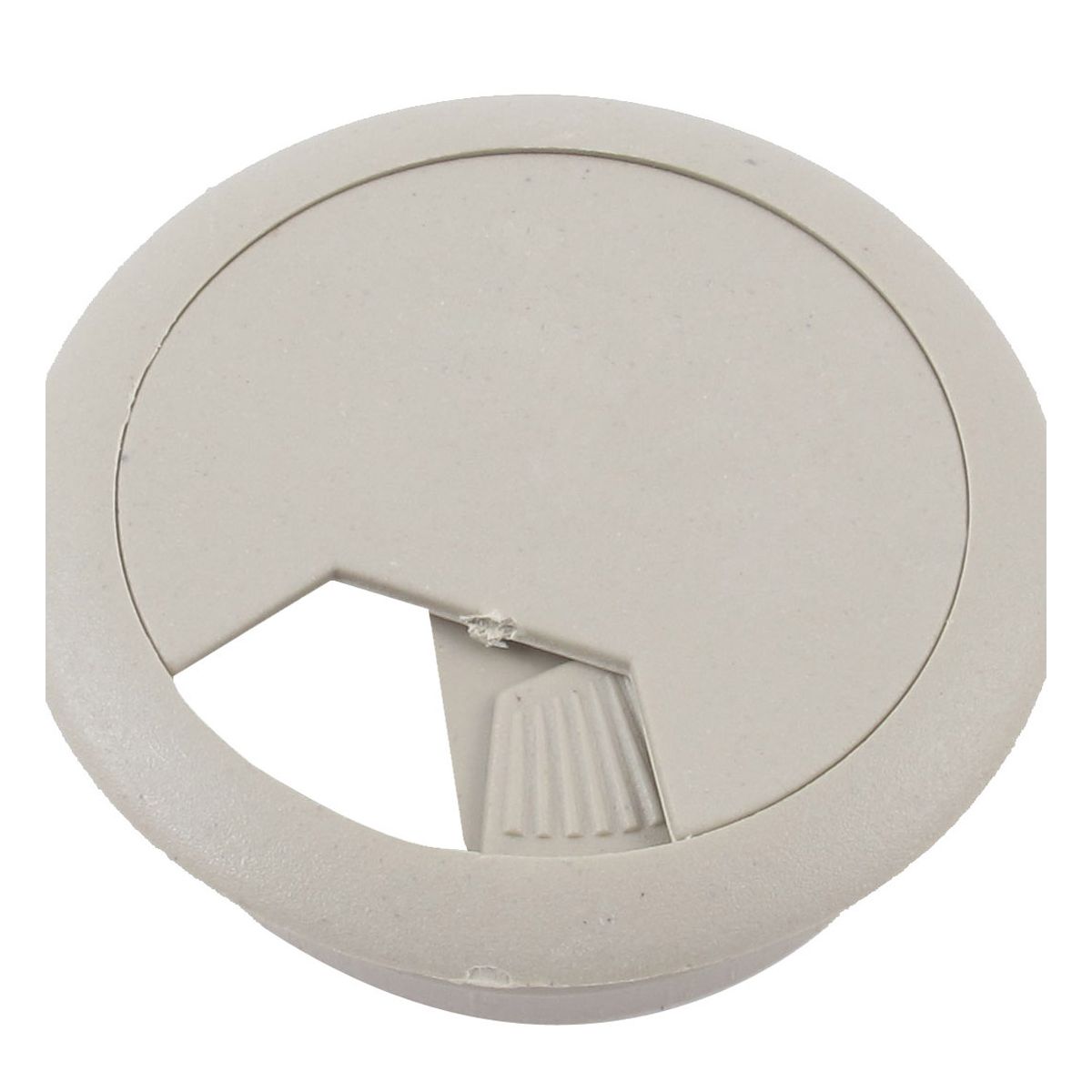 The round grommets fit a 5cm drilling hole and are made of plastic material. Designed with removable features, they are suitable for various sizes of computer cables. This ideal accessory allows you to install cables on your computer desk and is widely used in offices, homes, hotels, banks, and more. Includes two desk grommets in the package.