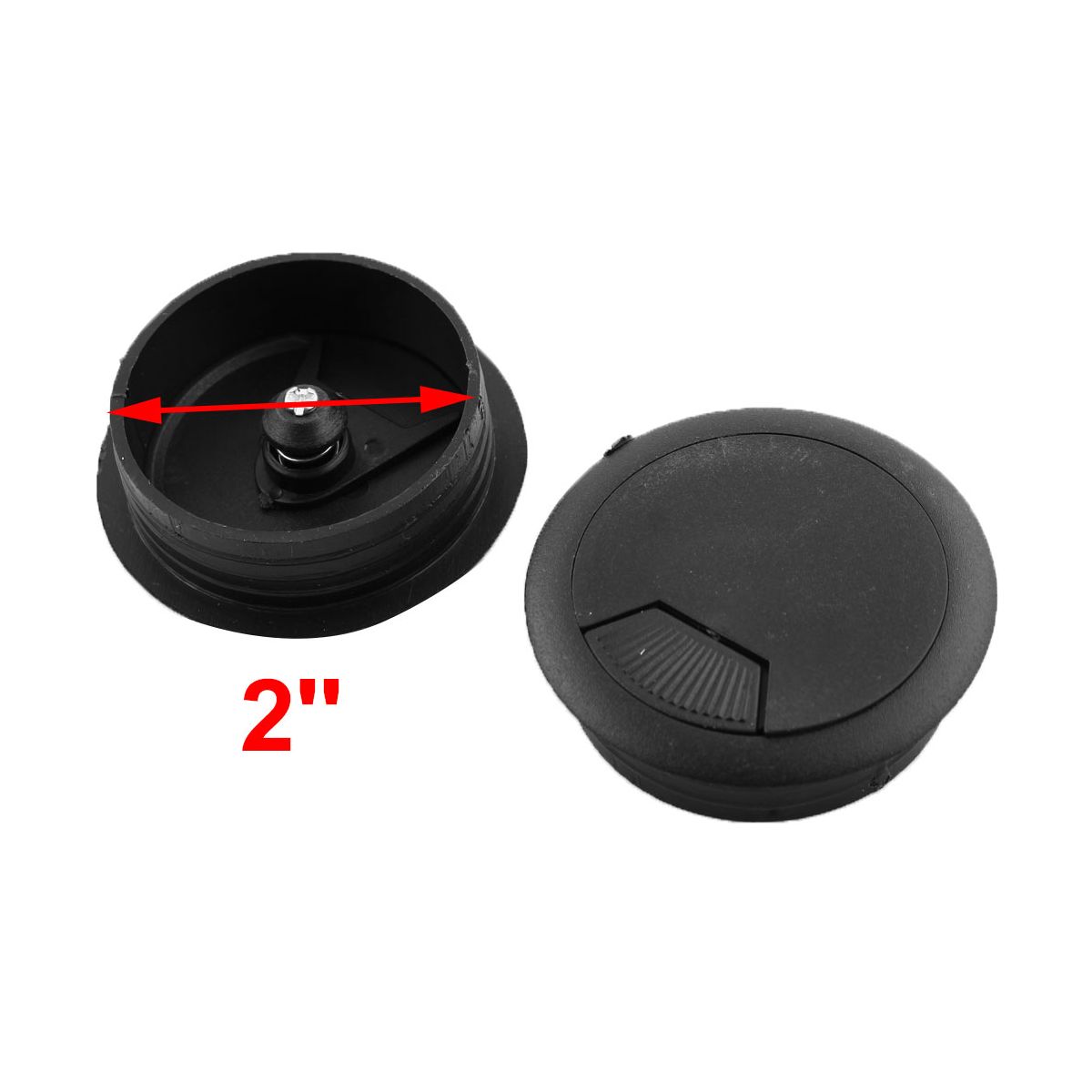 Designed with rotatable plastic material, this cable hole cover is suitable for various sizes of computer cables. It is an ideal accessory for installing cables on computer desks and is widely used in offices, homes, hotels, banks, and more. Mounting Hole Diameter is 50mm/2''. Overall Size is 61 x 17mm/2.4'' x 0.7'' (D*H). Package 4 x Cable Hole Cover.