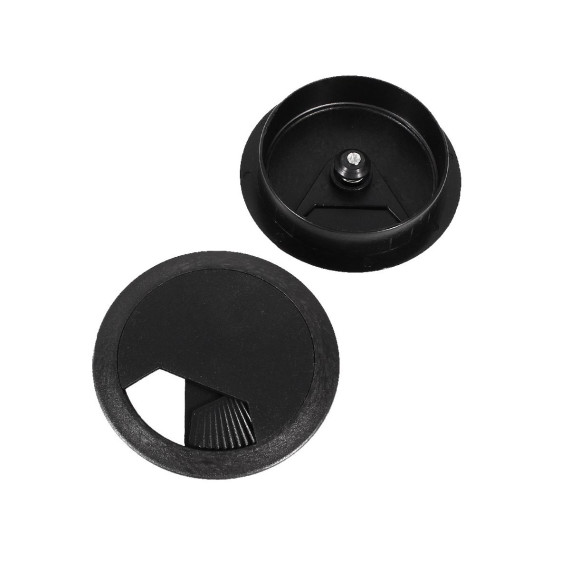 Made of plastic material with a polished finish that never scratches or scuffs your cable. The black grommet cable hole cover allows wires and cables to pass through safely and neatly. Suitable for desk and home office use. It has a diameter of 71 x 60mm and a height of 1.7cm. This product is lightweight at 43g and comes in a package of 3 pieces.